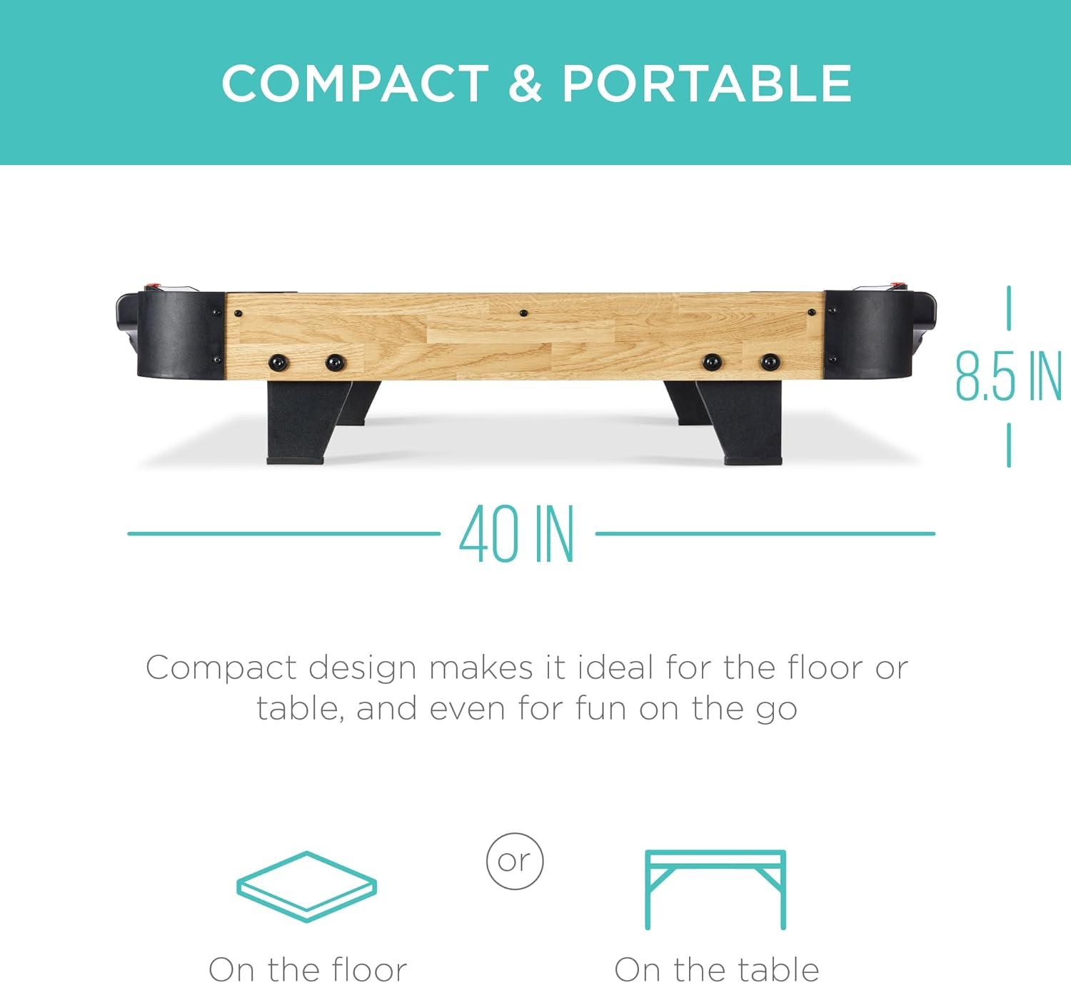 ABACUS SCORER: Designed with manual sliding scorekeepers and goal boxes, plus a convenient puck return on each side; 2 strikers and 2 pucks also included