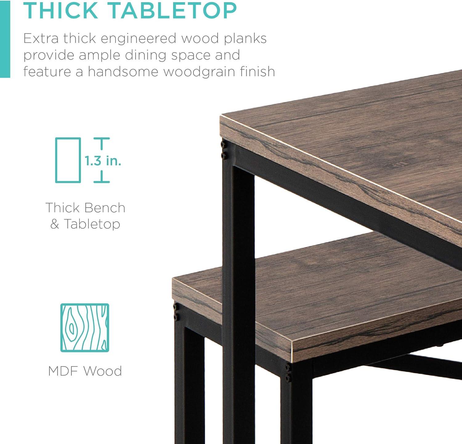 DURABLE & STURDY: High-quality metal and wood laminate can easily support a party of four; each seat can hold up to 500 pounds, while the table boasts a high 175-pound capacity; TABLE DIMENSIONS: 45.5″(L) x 29.5″(W) x 29.5″(H); BENCH DIMENSIONS: 40.5″(L) x 12″(W) x 17.5″(H); TABLE WEIGHT CAPACITY: 175 lbs.; BENCH WEIGHT CAPACITY: 500 lbs.