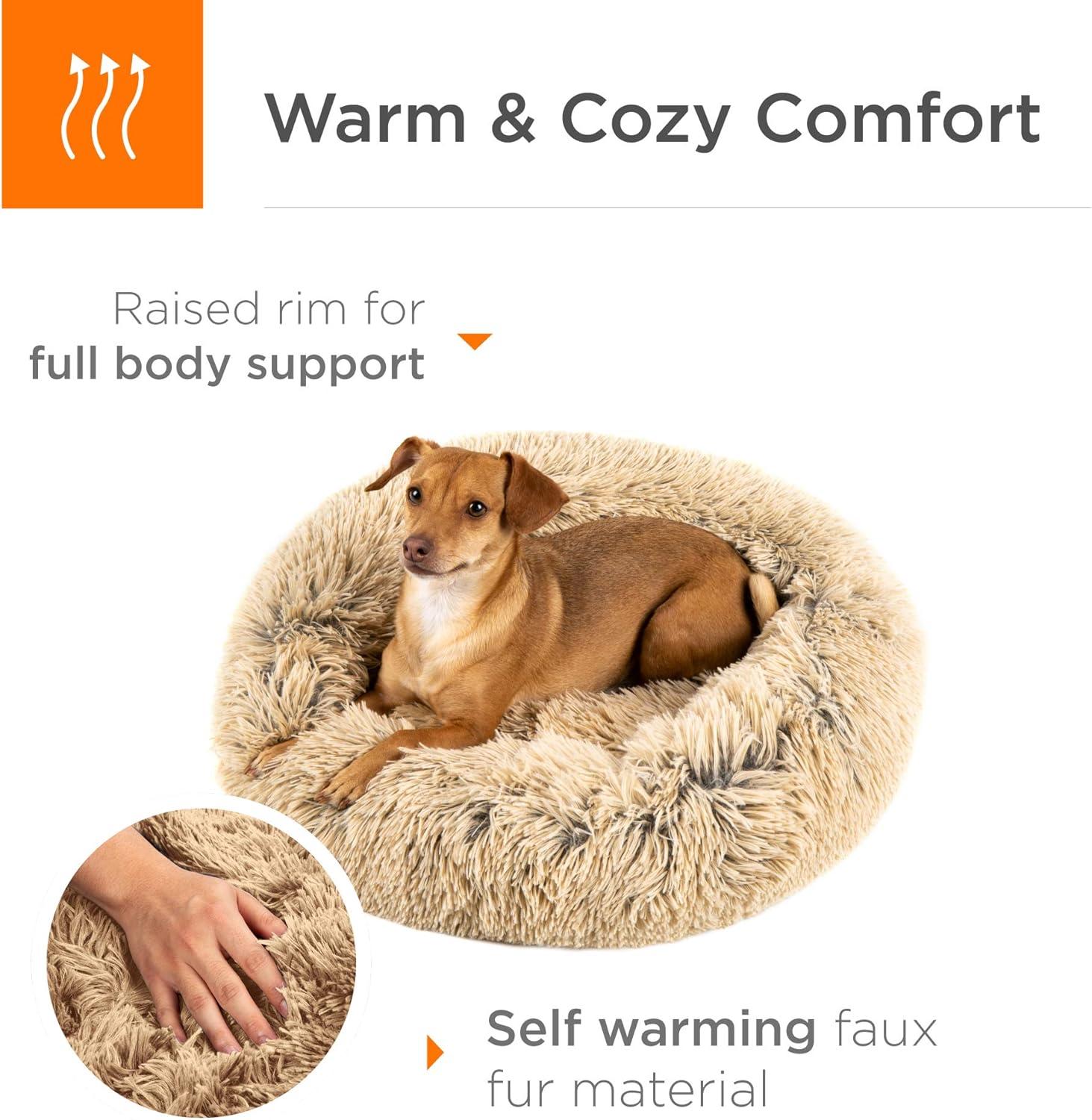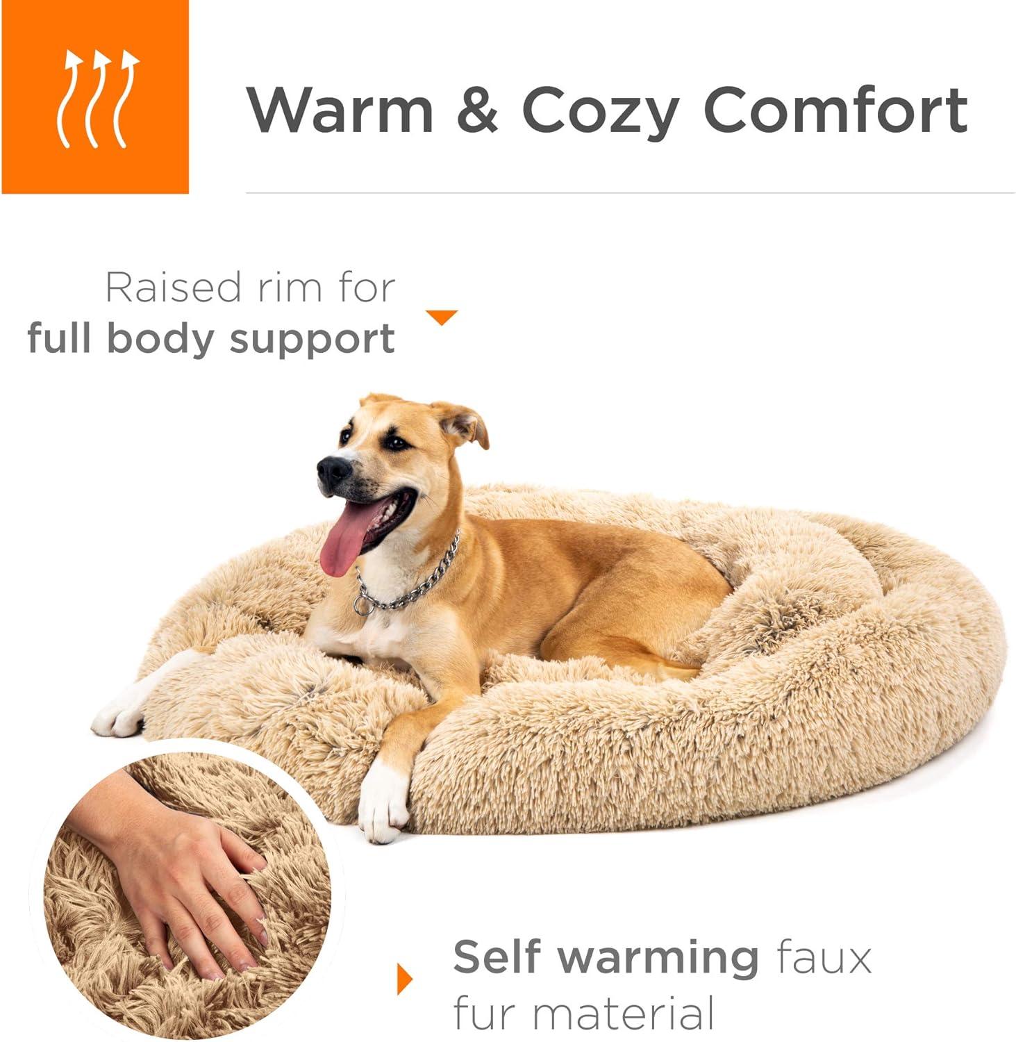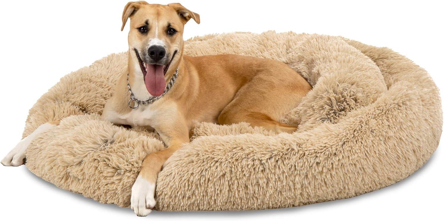 Best Choice Products 45in Dog Bed Self-Warming Plush Shag Fur Donut Calming Pet Bed Cuddler w/Water-Resistant Lining, Raised Rim – Brown(Brown)