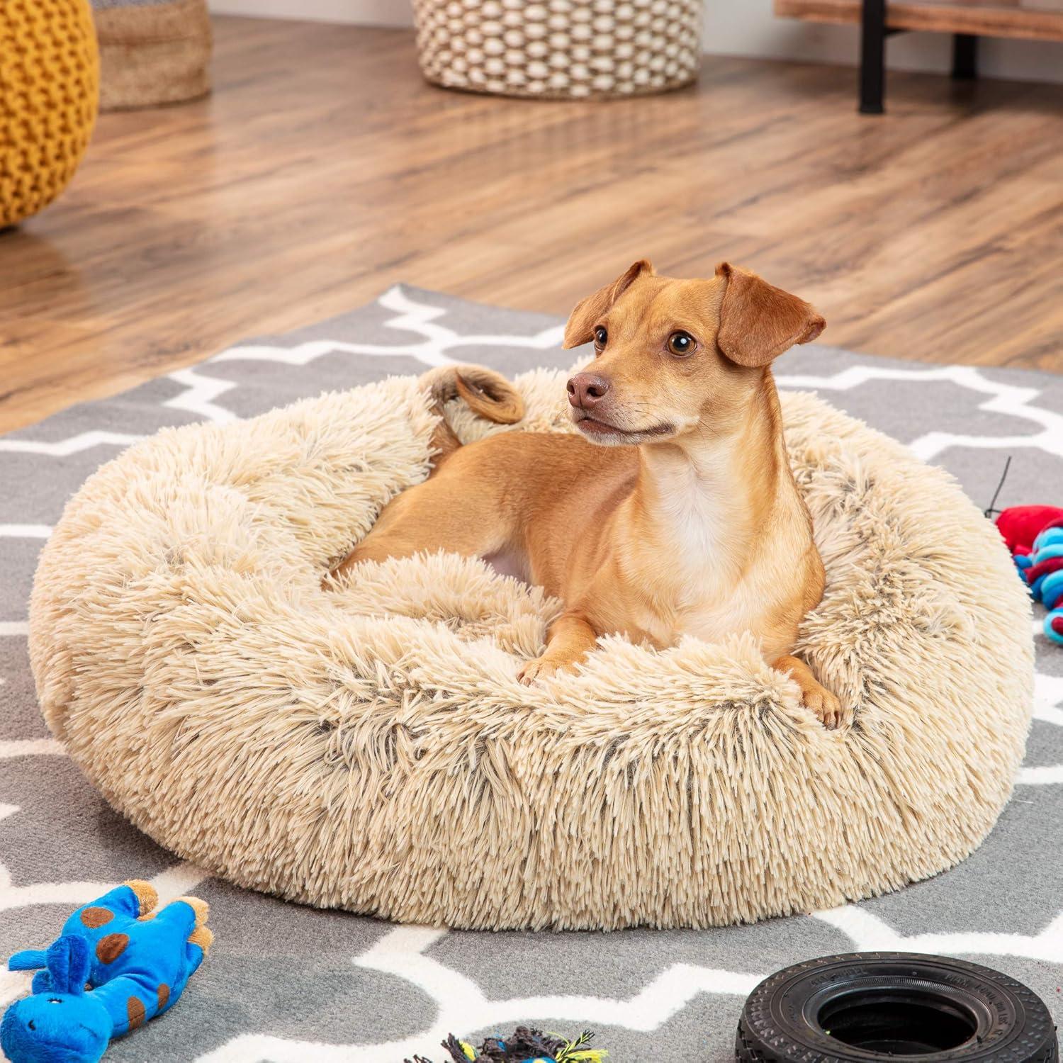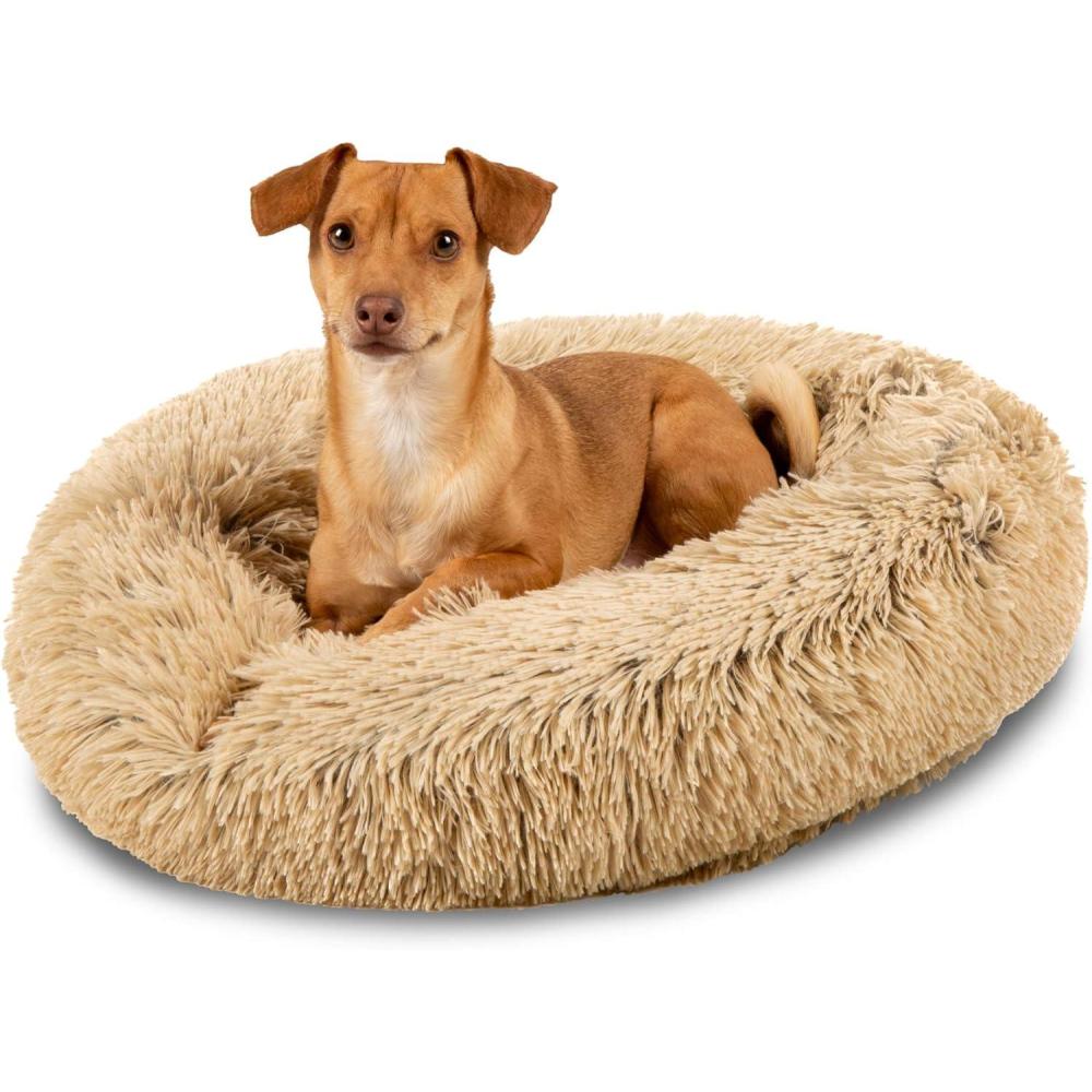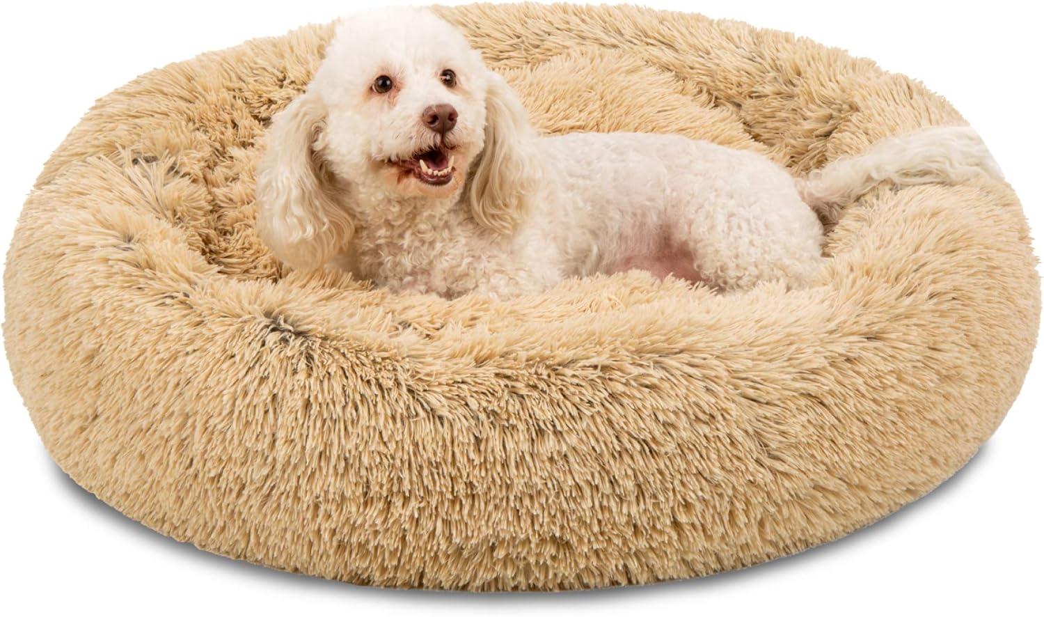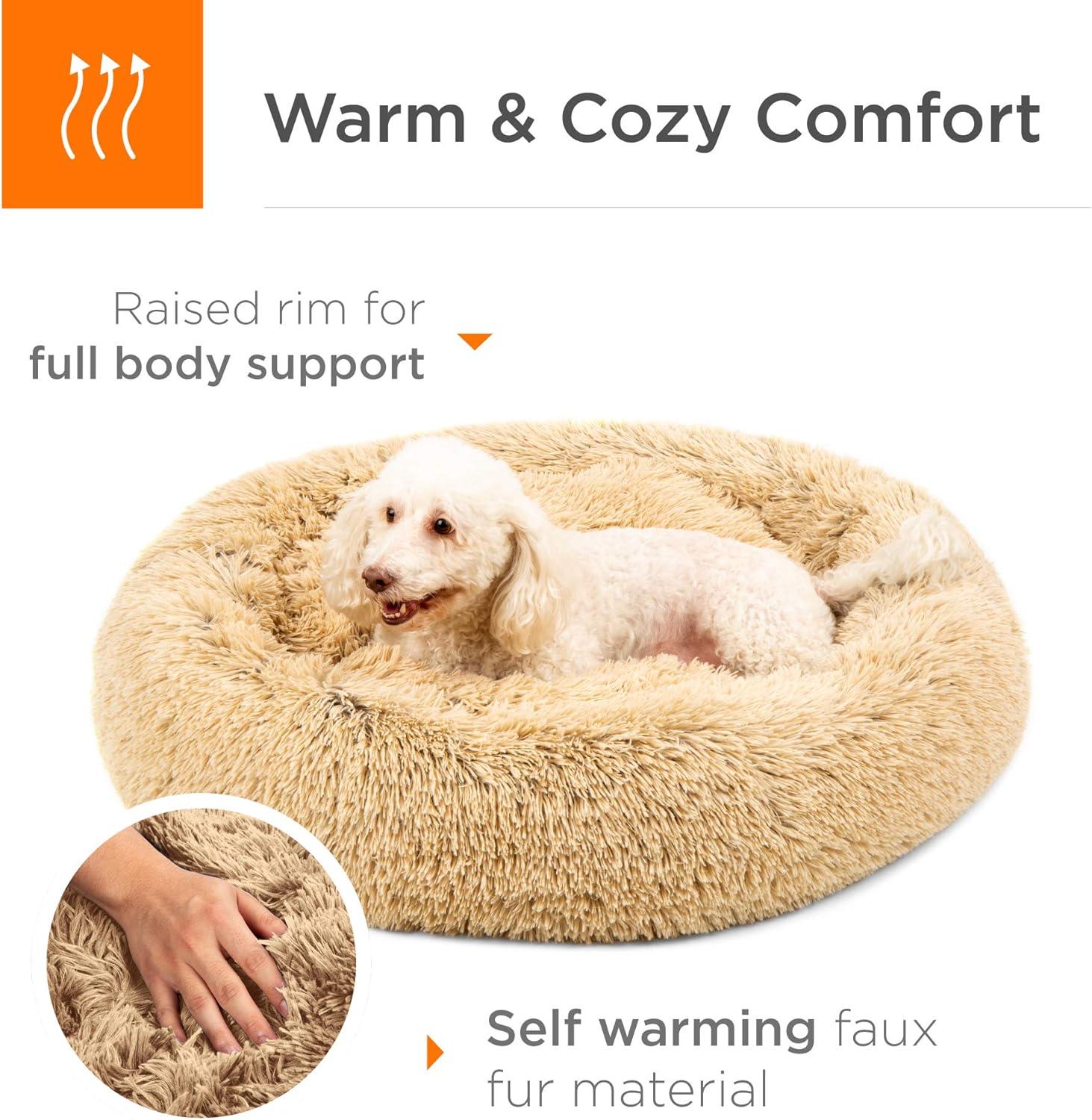 Best Choice Products 45in Dog Bed Self-Warming Plush Shag Fur Donut Calming Pet Bed Cuddler w/Water-Resistant Lining, Raised Rim – Brown(Brown)