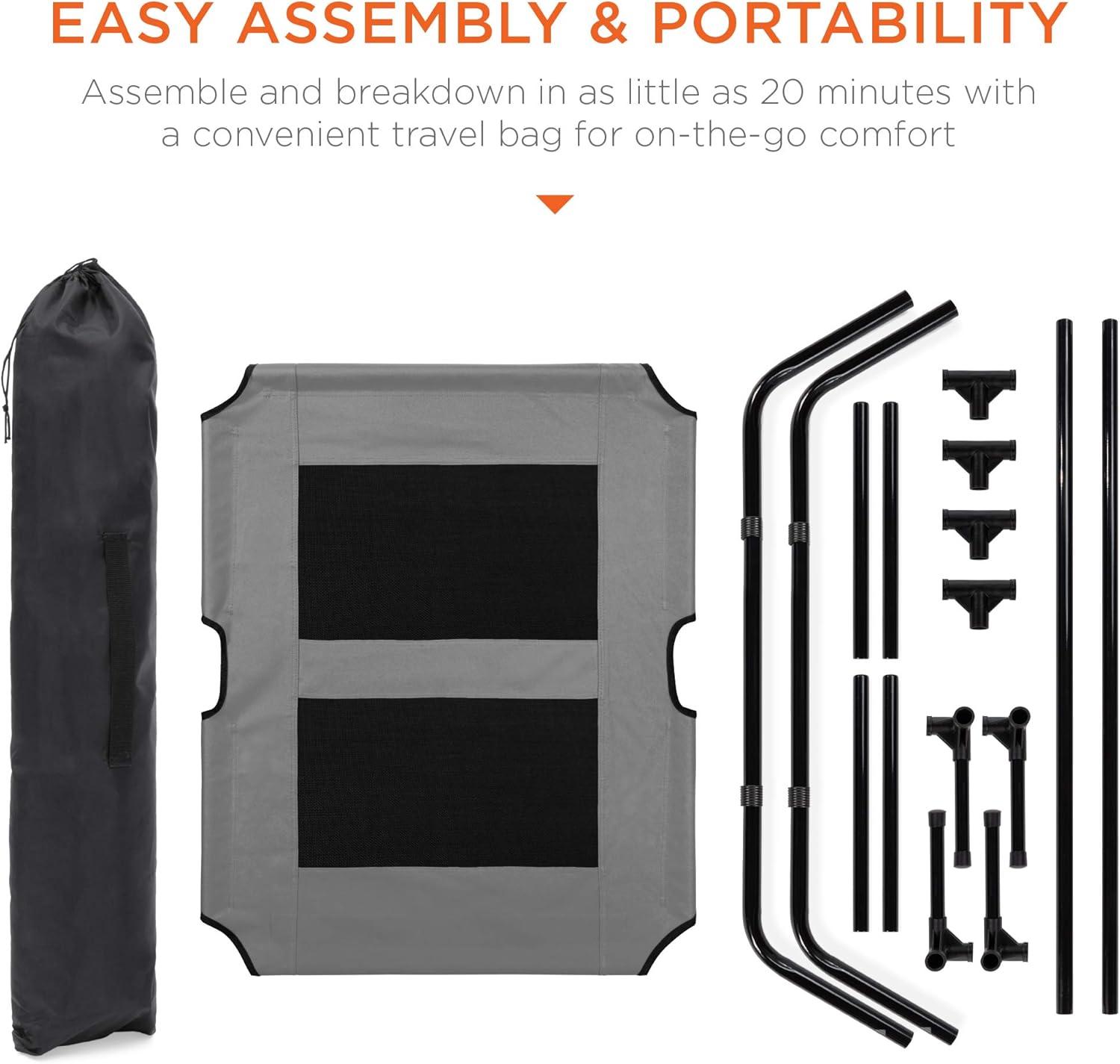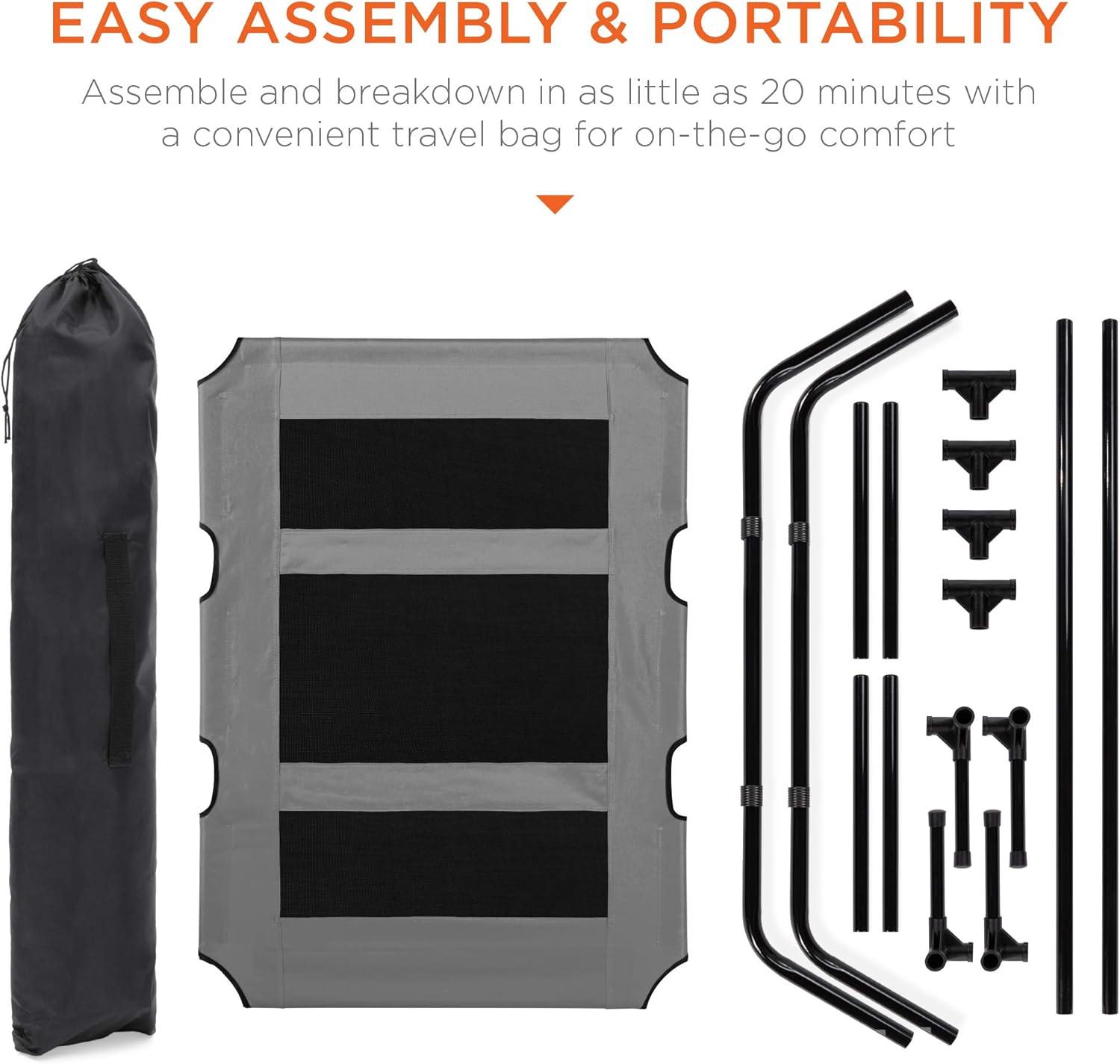 EASY ASSEMBLY & PORTABILITY: Put away your tools and set up this pet bed in as little as 20 minutes, then quickly break it down into the included travel bag for a fun outing; OVERALL DIMENSIONS: 48″(L) x 36″(W) x 45″(H); Weight Capacity: 100 lbs.