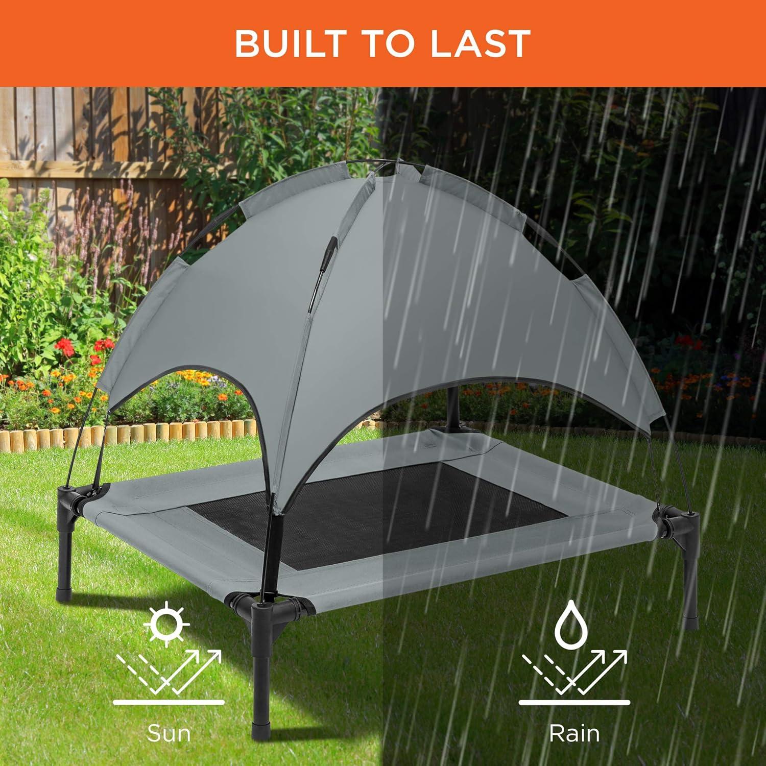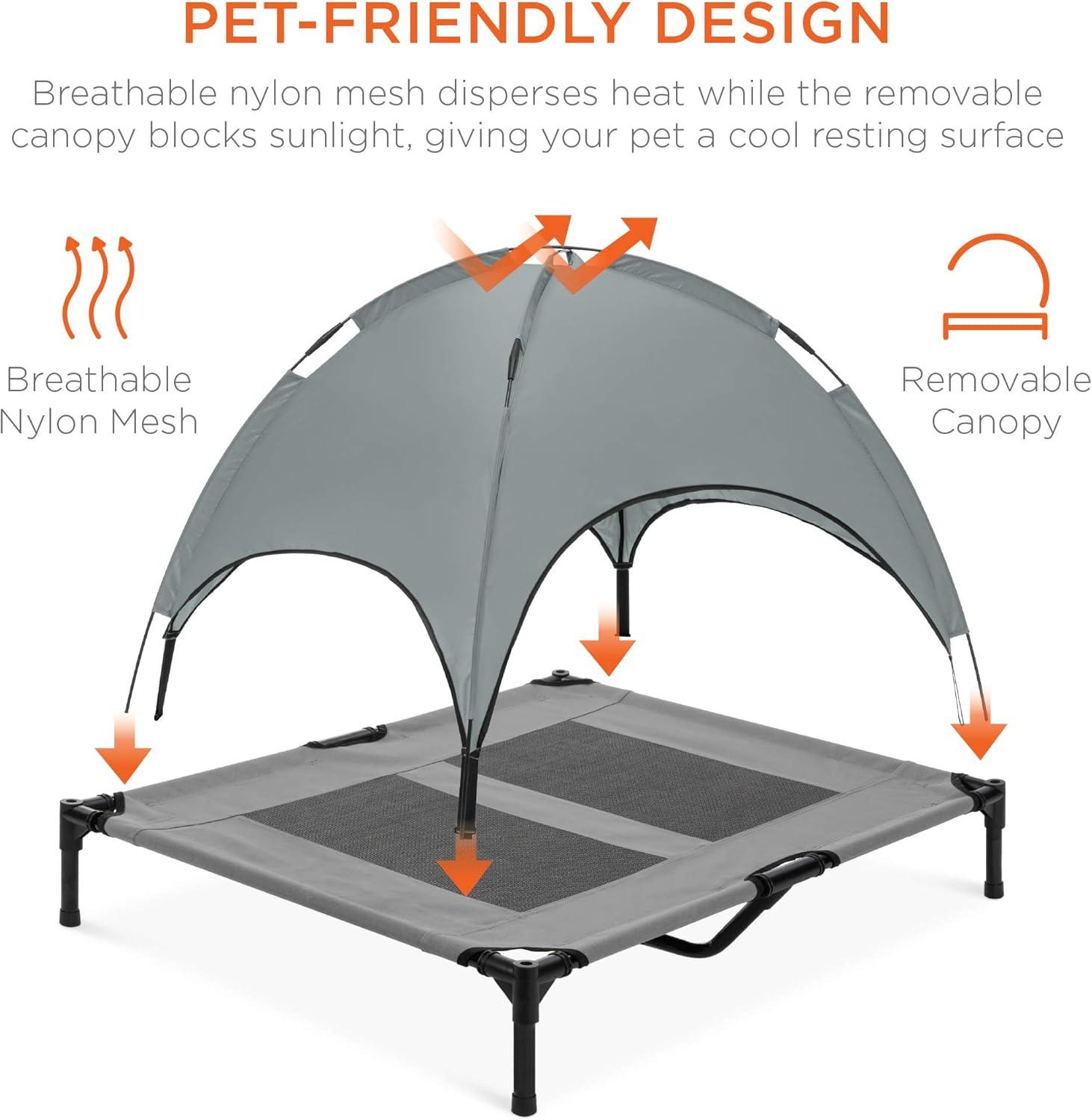 PET-FRIENDLY DESIGN: A breathable nylon mesh bed sits under a removable canopy to disperse heat and block the sun; cooling your pet and preventing odor buildup