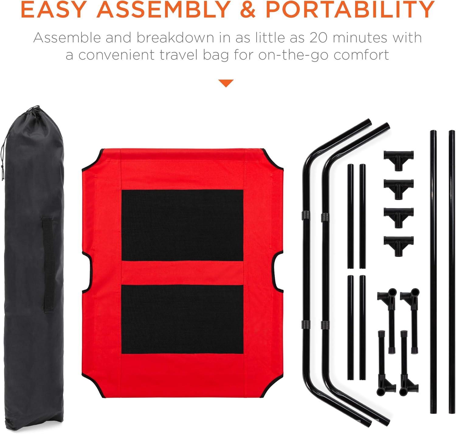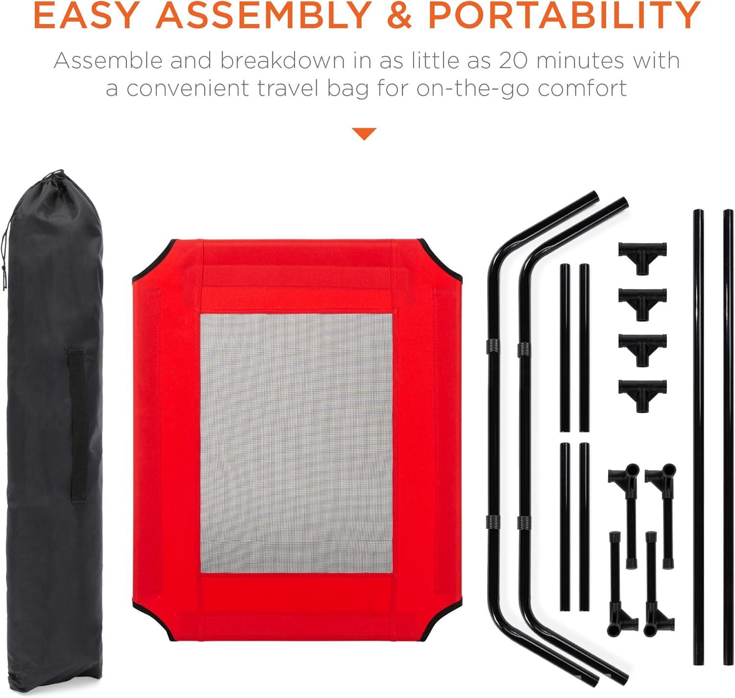 Best Choice Products 48in Elevated Cooling Dog Bed, Outdoor Raised Mesh Pet Cot w/Removable Canopy Shade Tent, Carrying Bag, Breathable Fabric – Gray(Red)
