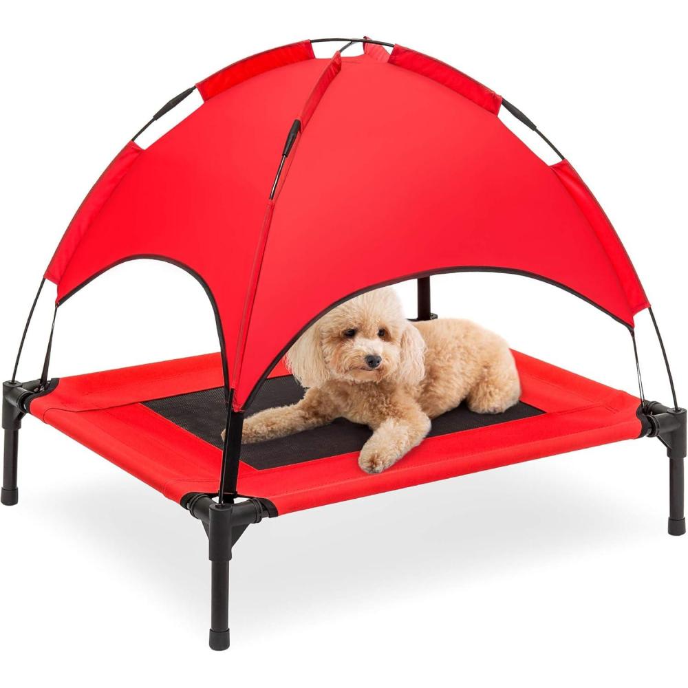 Best Choice Products 48in Elevated Cooling Dog Bed, Outdoor Raised Mesh Pet Cot w/Removable Canopy Shade Tent, Carrying Bag, Breathable Fabric - Gray(Red)