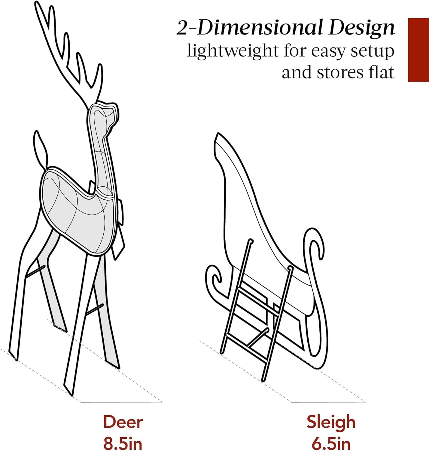 4FT 2D REINDEER & SLEIGH DECORATION: An iconic pair comes to life with a robust, two-dimensional design that adds a unique touch to your outdoor holiday decor