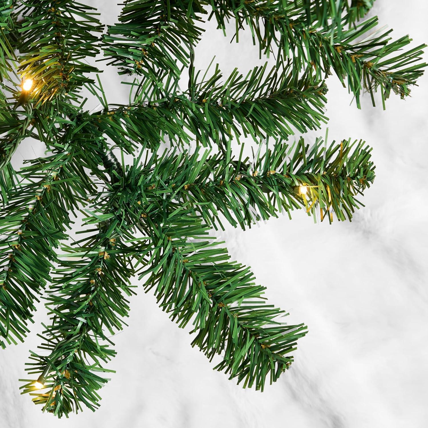 BATTERY-POWERED TWINKLING LED LIGHTS: Our trees come pre-strung with 65 white LED lights, battery-powered and complete with a timer for season-long enjoyment; Note: Requires 3 AA batteries (not included)