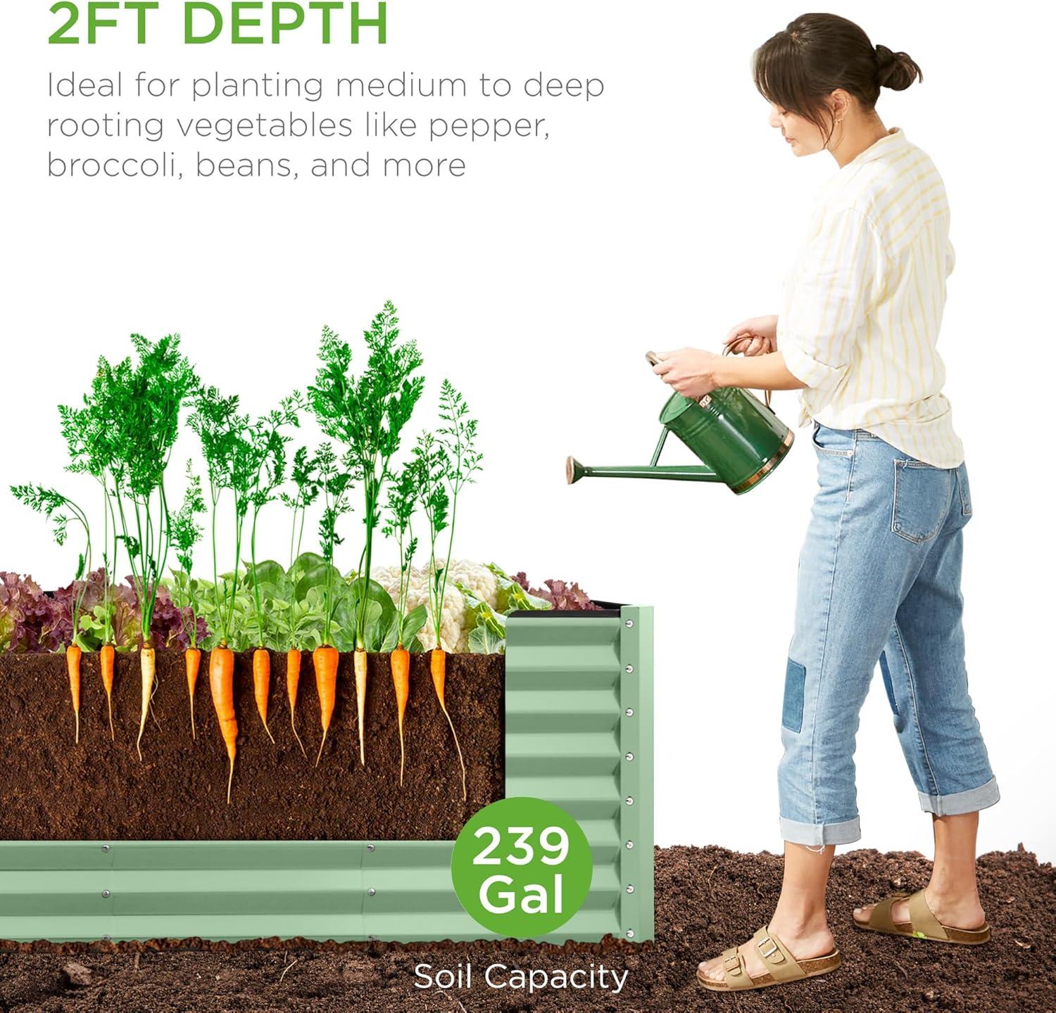 Best Choice Products 4x2x2ft Outdoor Metal Raised Garden Bed, Deep Root Planter Box for Vegetables, Flowers, Herbs, and Succulents w/ 119 Gallon Capacity - Taupe(Sage Green)