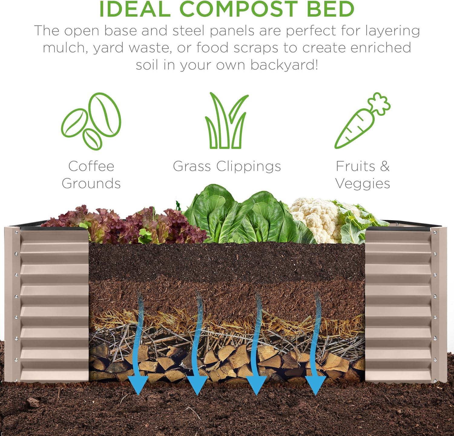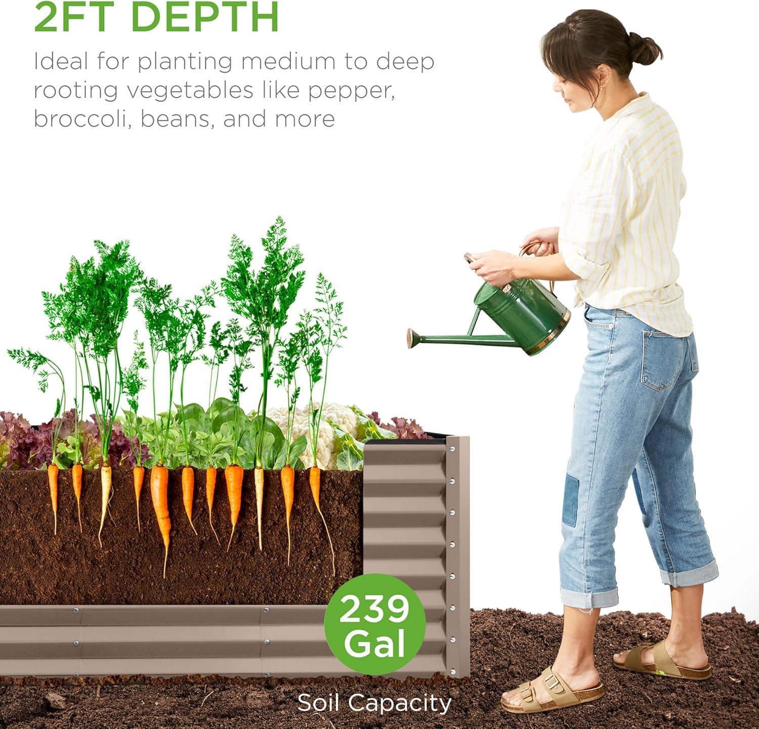 Best Choice Products 4x2x2ft Outdoor Metal Raised Garden Bed, Deep Root Planter Box for Vegetables, Flowers, Herbs, and Succulents w/ 119 Gallon Capacity - Taupe(Taupe)