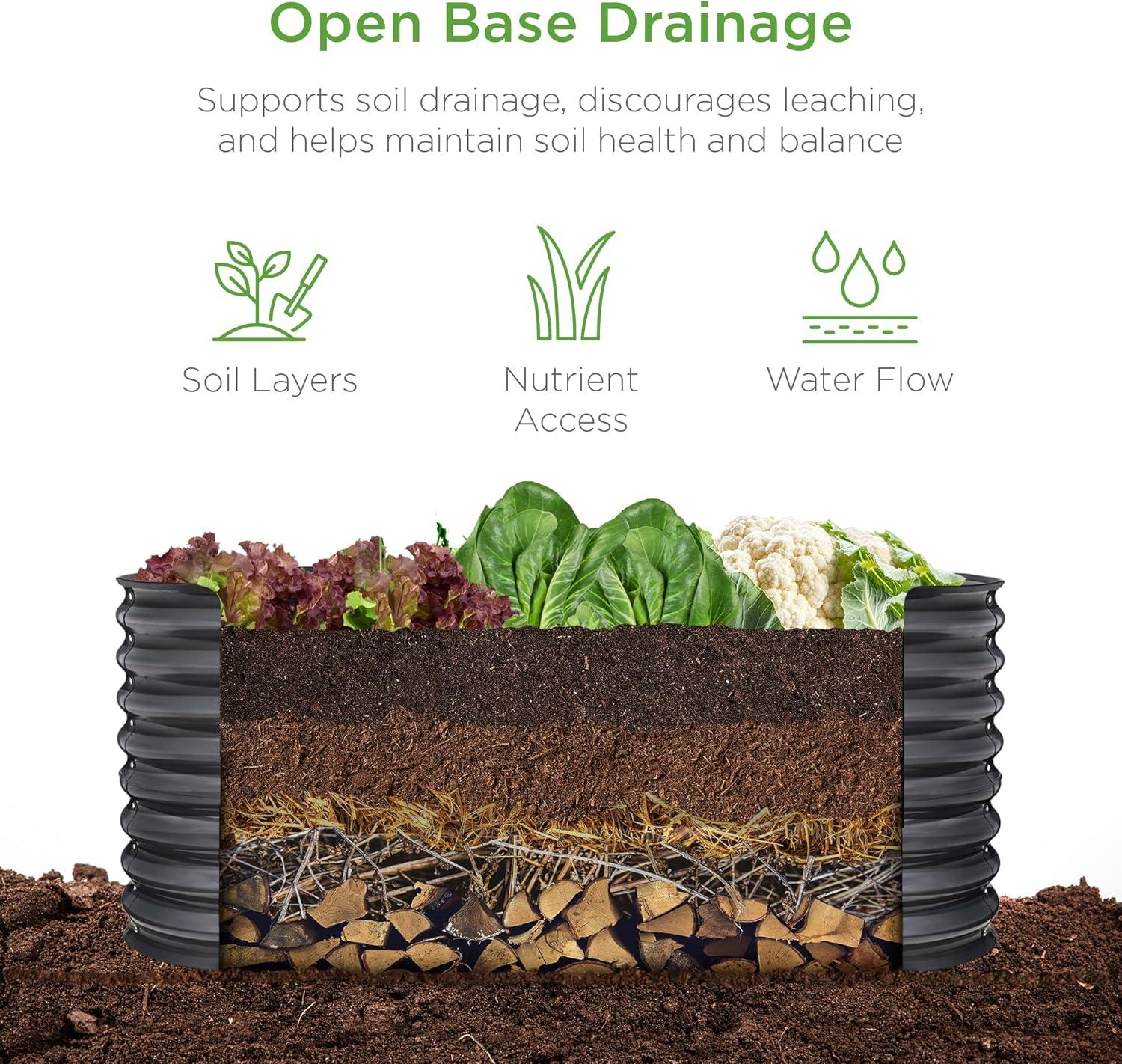 Best Choice Products 4x2x2ft Outdoor Metal Raised Garden Bed, Oval Deep Root Planter Box for Vegetables, Flowers, Herbs, and Succulents w/ 101 Gallon Capacity, Rubber Edge Guard - Charcoal(Charcoal)