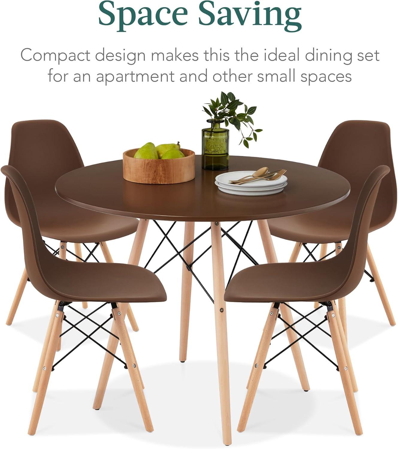 imageBest Choice Products 5Piece Dining Set Compact MidCentury Modern Table ampamp Chair Set for Home Apartment w 4 Chairs Plastic Seats Wooden Legs Metal Frame  BlueOakBrownOak