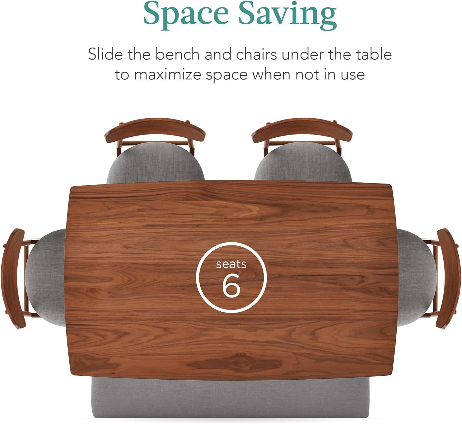 Best Choice Products 6-Piece Wooden Dining Set, Mid-Century Modern Table & Upholstered Chair Set w/Bench Seat, Rubberwood Legs – Walnut/Charcoal(Walnut/Gray)
