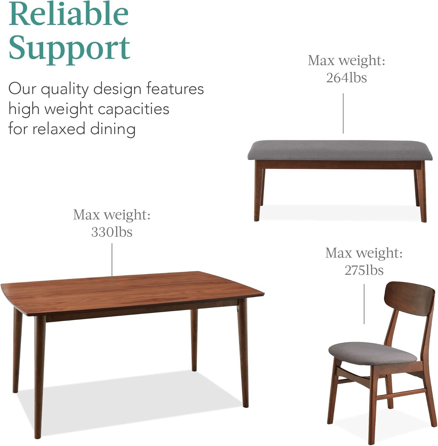Be the first to review “Best Choice Products 6-Piece Wooden Dining Set, Mid-Century Modern Table & Upholstered Chair Set w/Bench Seat, Rubberwood Legs – Walnut/Charcoal(Walnut/Gray)”