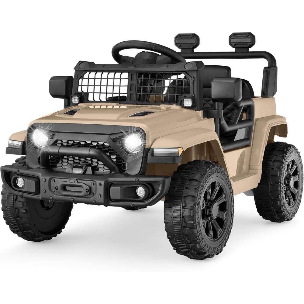 RUGGED FEATURES: Fully functioning plastic tires with 4-wheel suspension pair with functional LED headlights, realistic sounds, and a rechargeable battery; OVERALL DIMENSIONS: 34.5″(L) x 23.25″(W) x 22.75″(H); WEIGHT CAPACITY: 44 lbs.