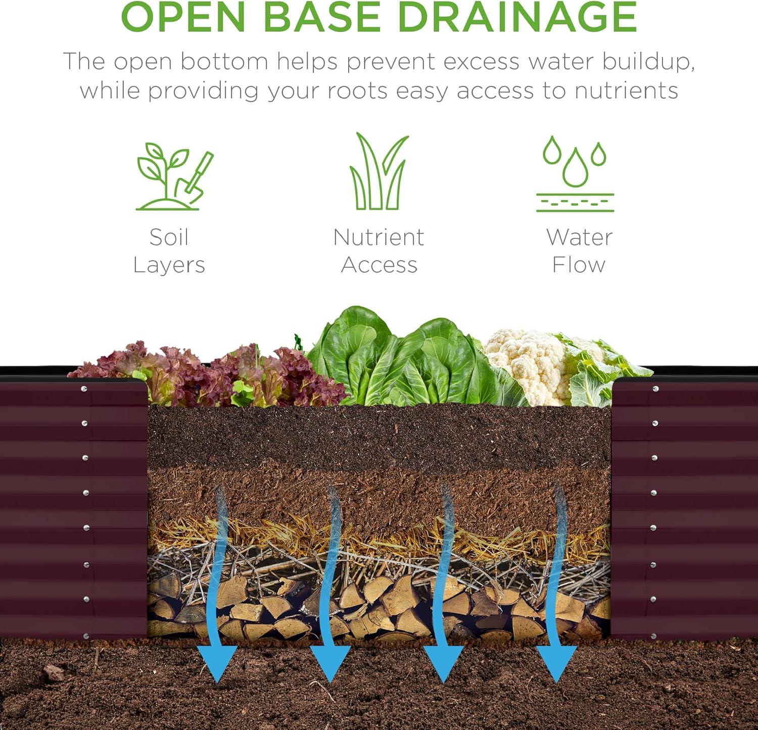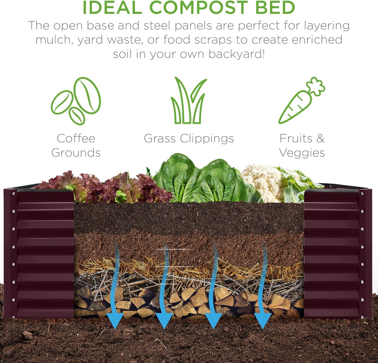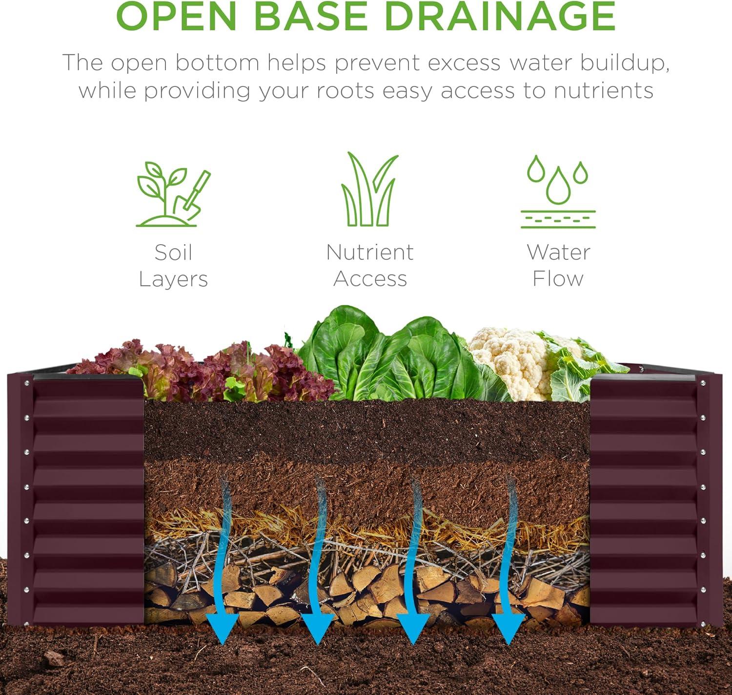 Best Choice Products 6x3x2ft Outdoor Metal Raised Garden Bed, Deep Root Box Planter for Vegetables, Flowers, Herbs, and Succulents w/ 269 Gallon Capacity - Peacock Blue(Burgundy)