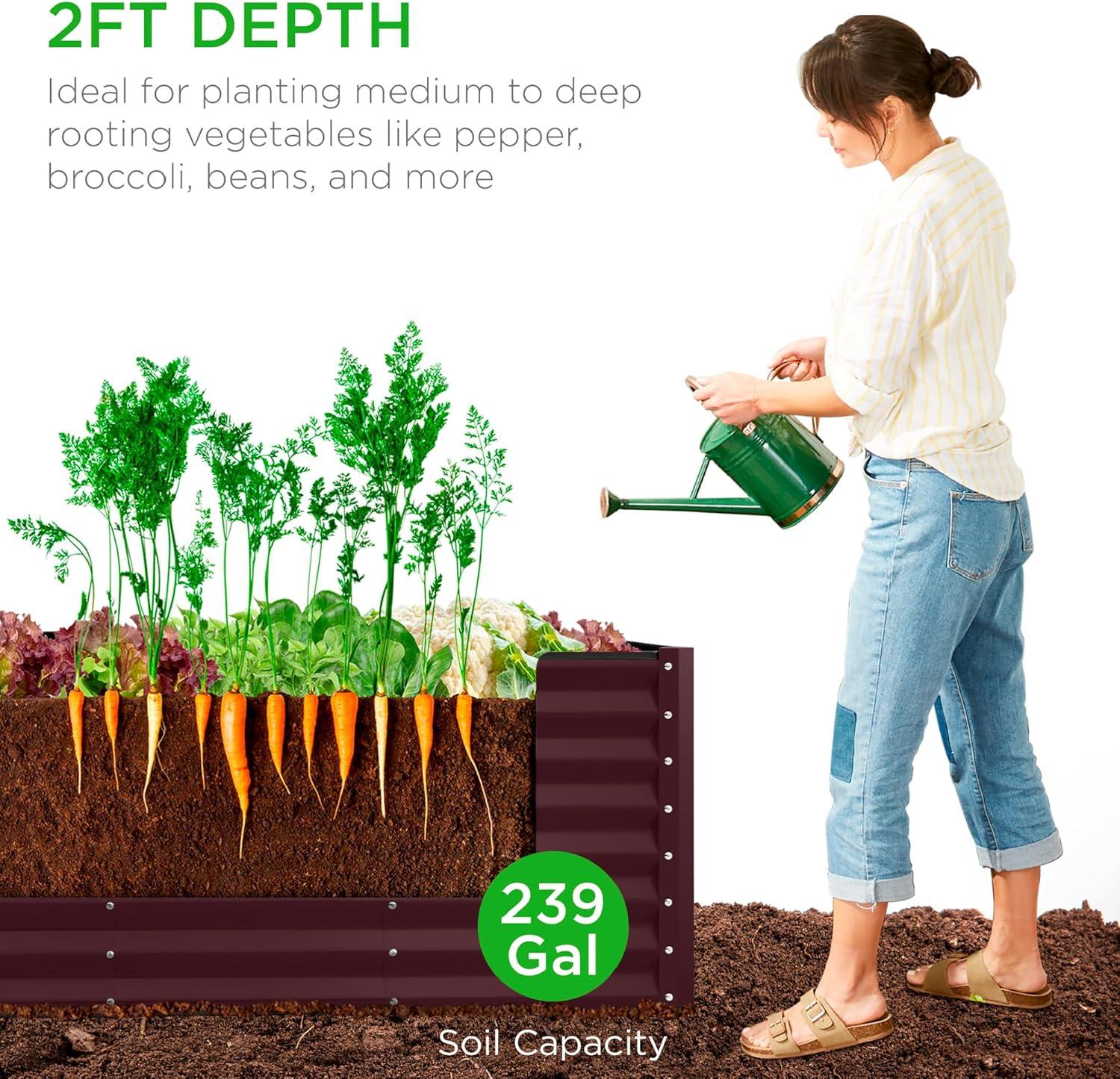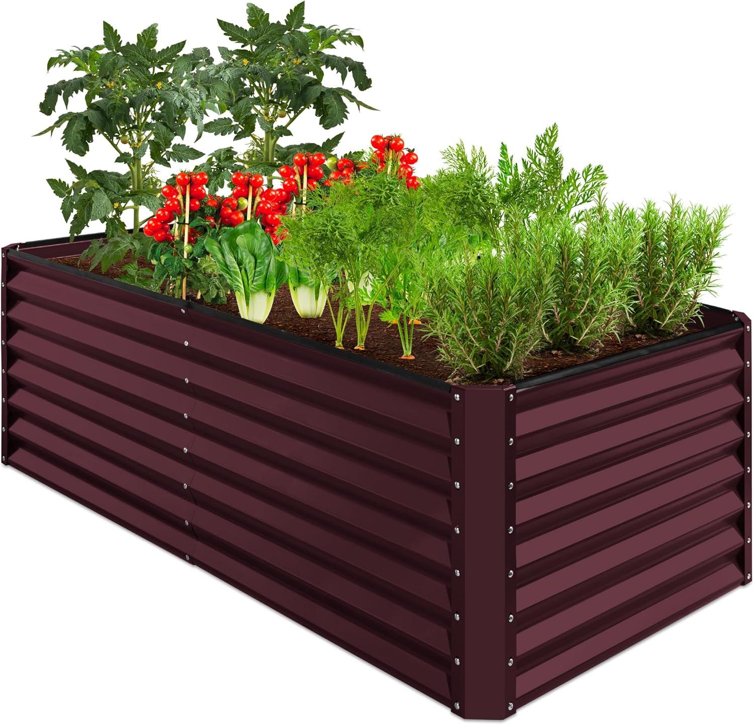 Best Choice Products 6x3x2ft Outdoor Metal Raised Garden Bed, Deep Root Box Planter for Vegetables, Flowers, Herbs, and Succulents w/ 269 Gallon Capacity – Peacock Blue(Burgundy)