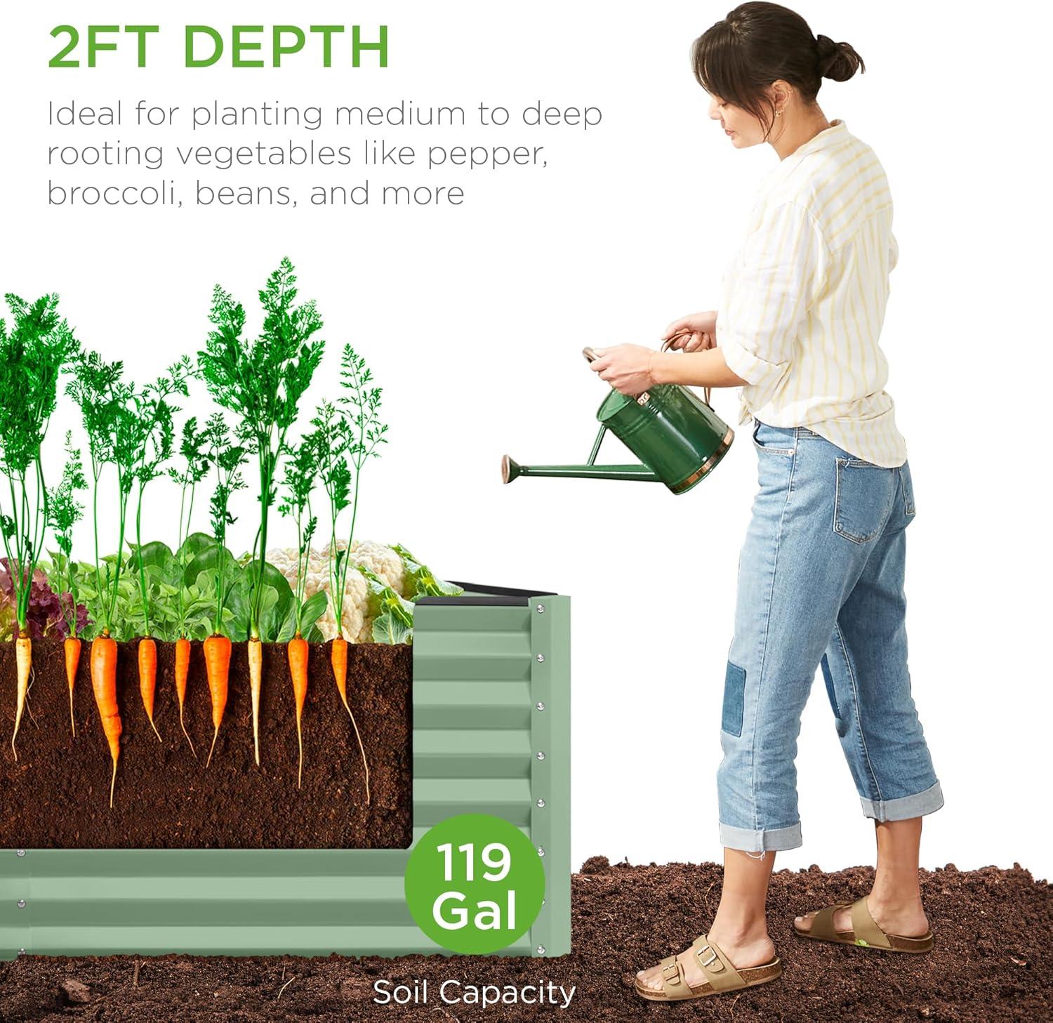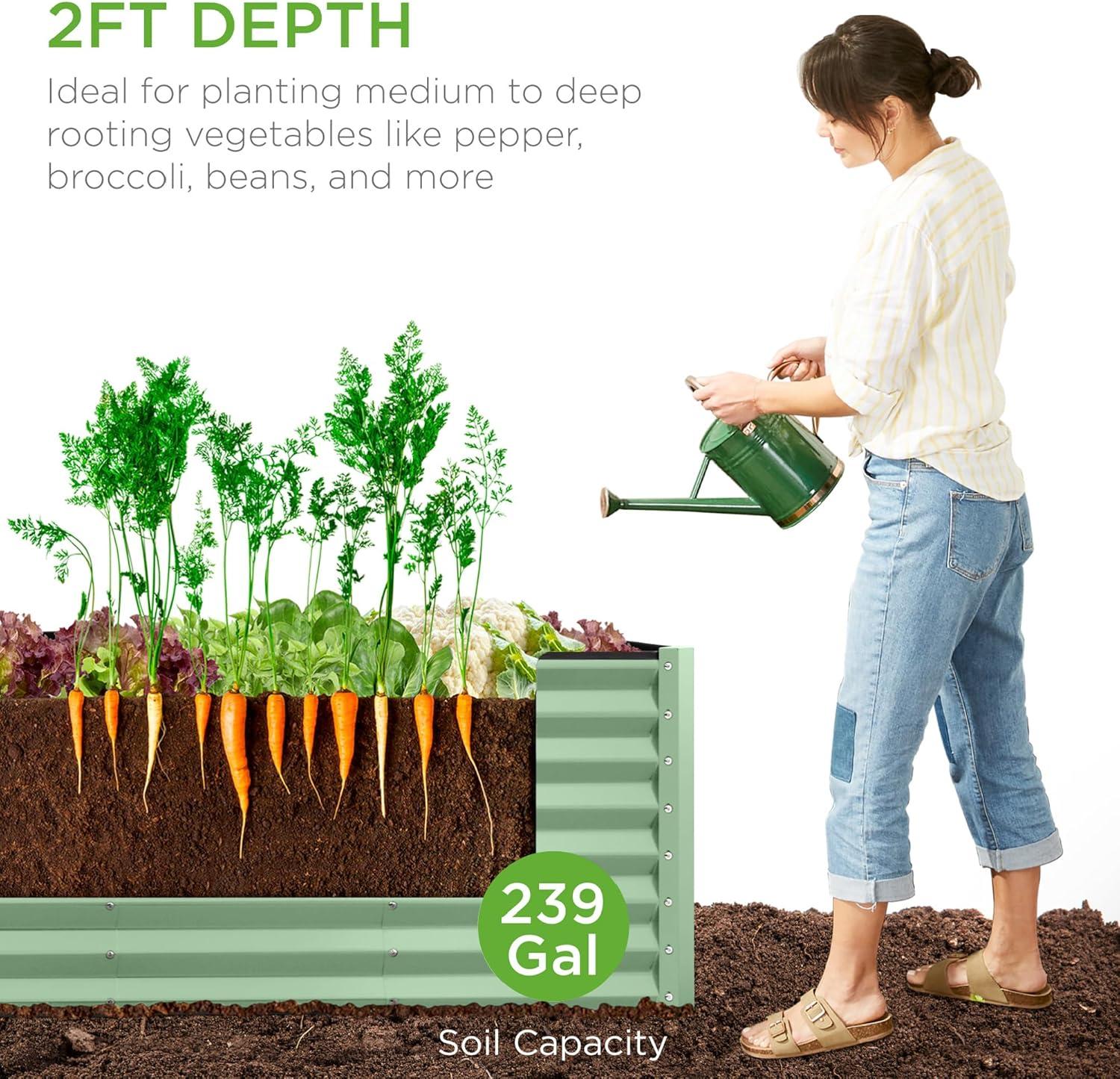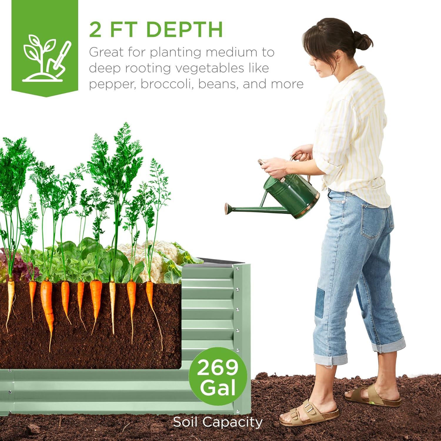 Best Choice Products 6x3x2ft Outdoor Metal Raised Garden Bed, Deep Root Box Planter for Vegetables, Flowers, Herbs, and Succulents w/ 269 Gallon Capacity - Peacock Blue(Sage Green)