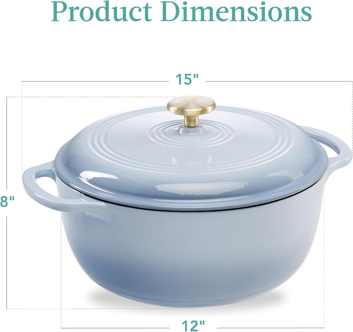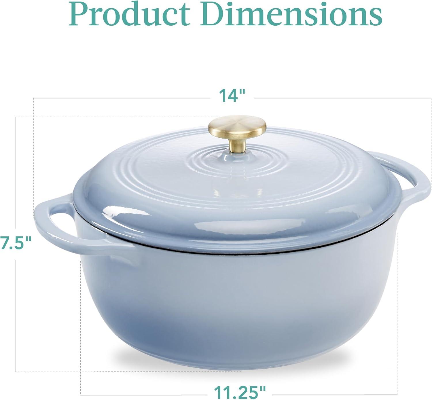 ELEVATE YOUR KITCHEN: A clean, glossy finish makes this dutch oven both a nostalgic icon and a modern addition to any well-equipped kitchen; features a brushed metal handle (silver or gold) for an extra touch of style!; OVERALL DIMENSIONS: 15″(L) x 12″(W) x 8″(H); OVEN CAPACITY: 7.5 Qt.