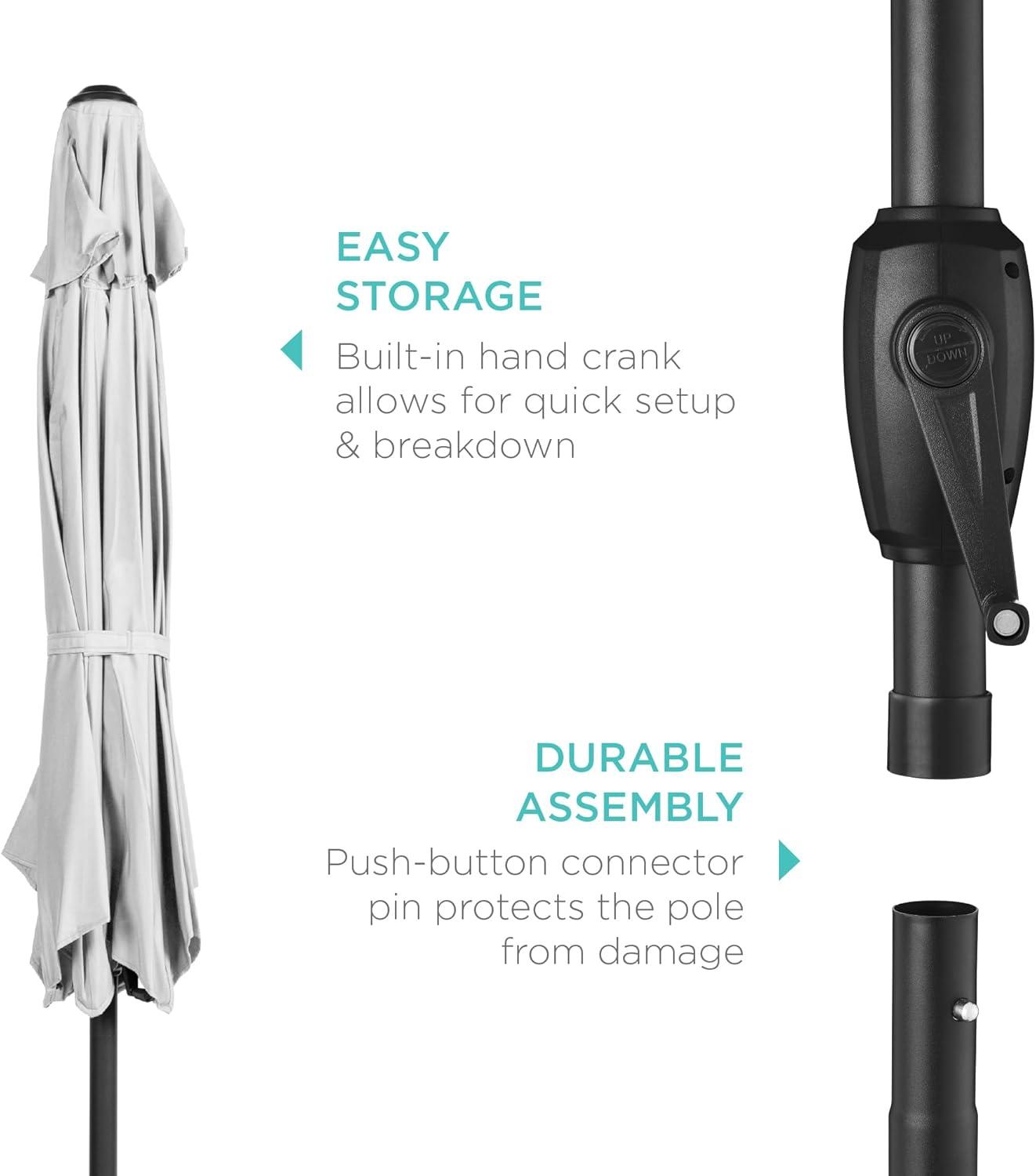 USER-FRIENDLY MECHANISMS: Features a hand-operated crank to open and close the umbrella with ease, while a push-button tilt system adds extra security against the sun