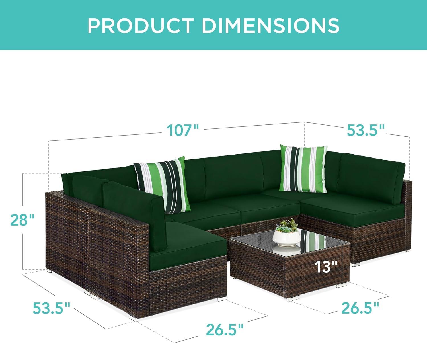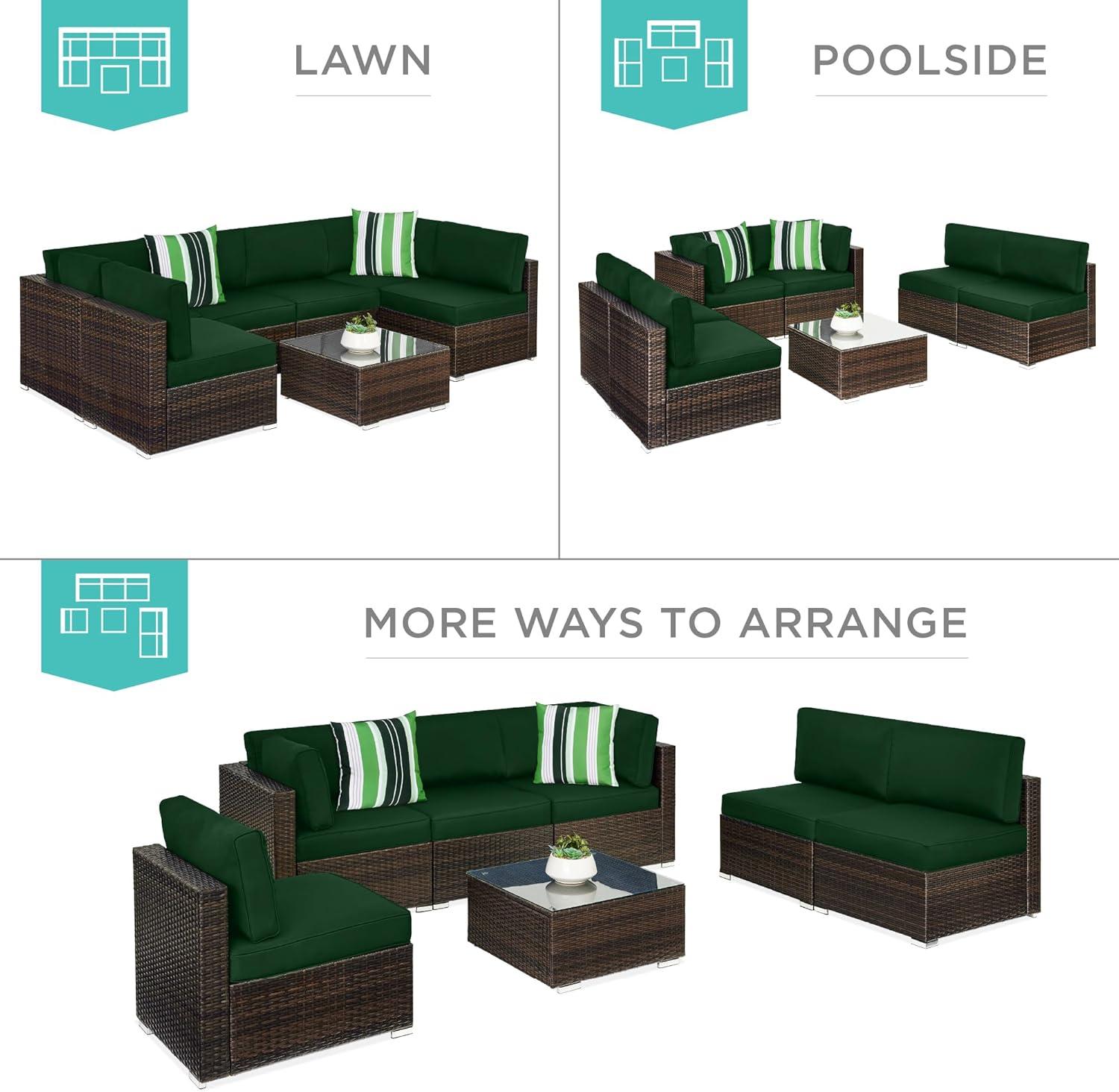 Best Choice Products 7-Piece Modular Outdoor Sectional Wicker Patio Conversation Set w/ 2 Pillows, Coffee Table, Cover Included – Gray/Cream(Brown/Midnight Green)