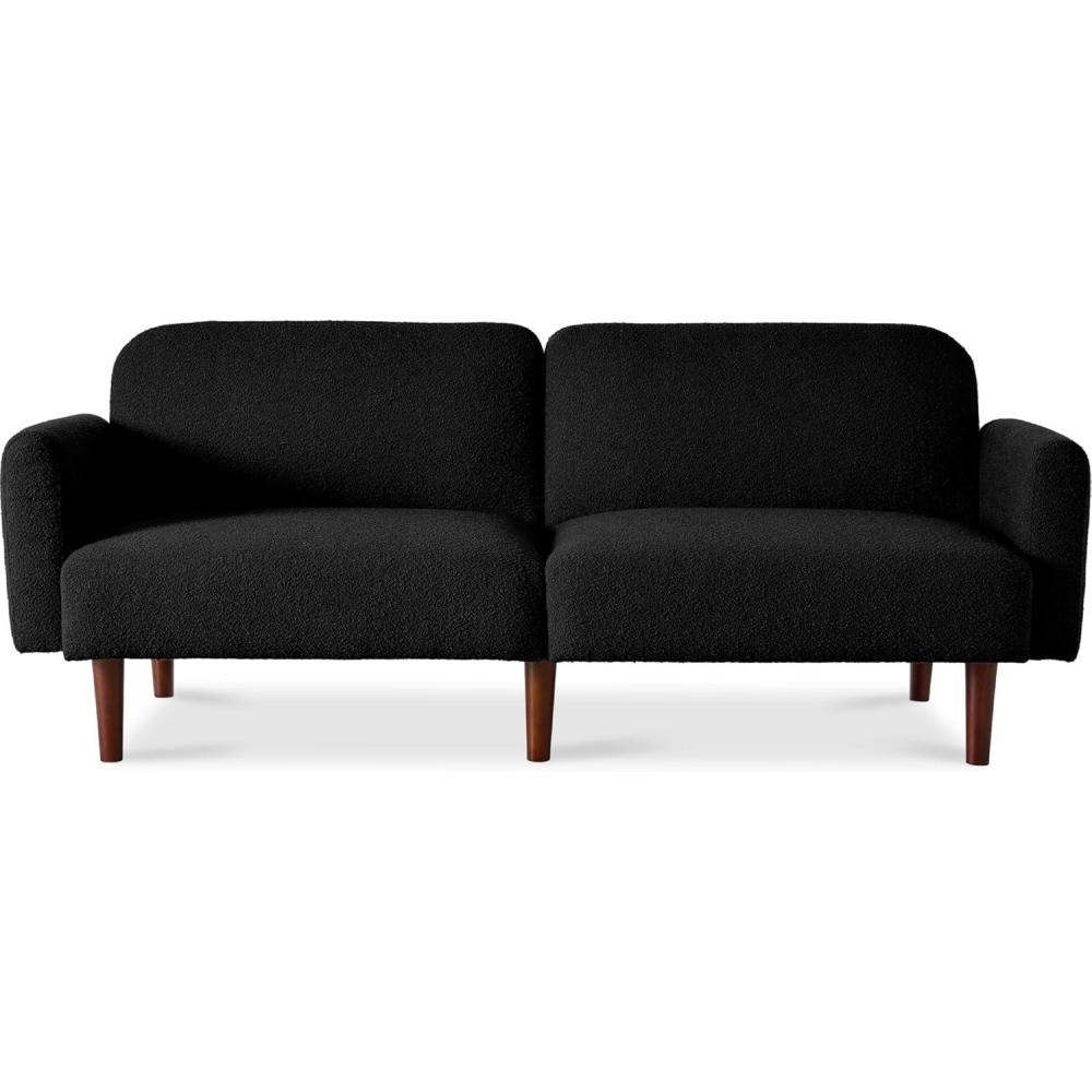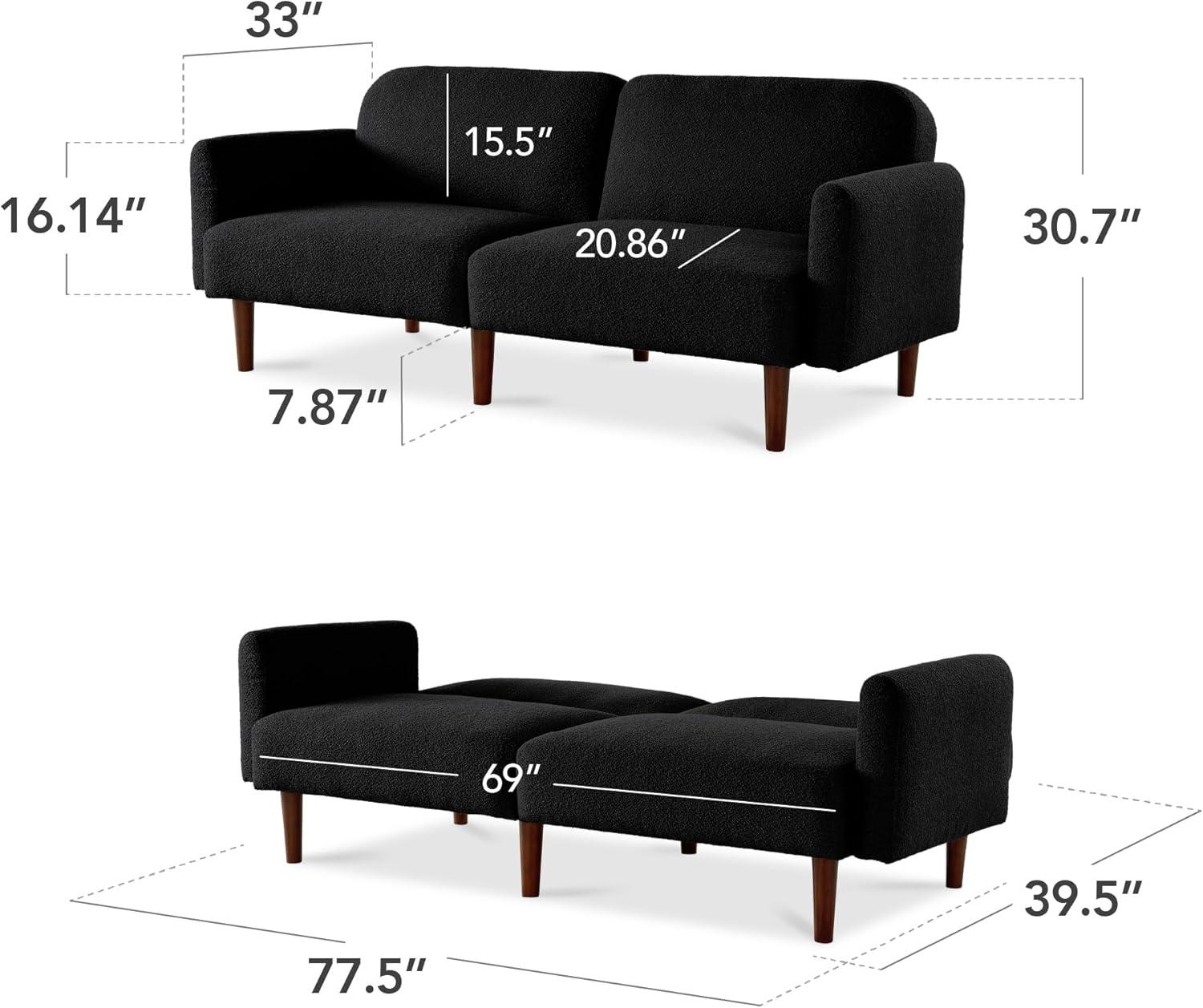 Best Choice Products 77" Mid Century Modern Boucle Loveseat Sofa, Couch, Convertible Sofa Sleeper Bed w/Real Wood, Removable Armrest - Slate Blue(Boucle - Midnight Black)