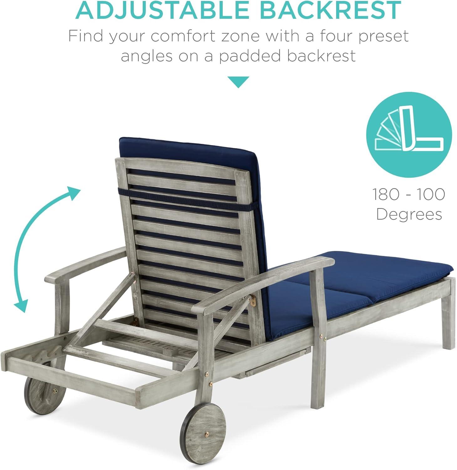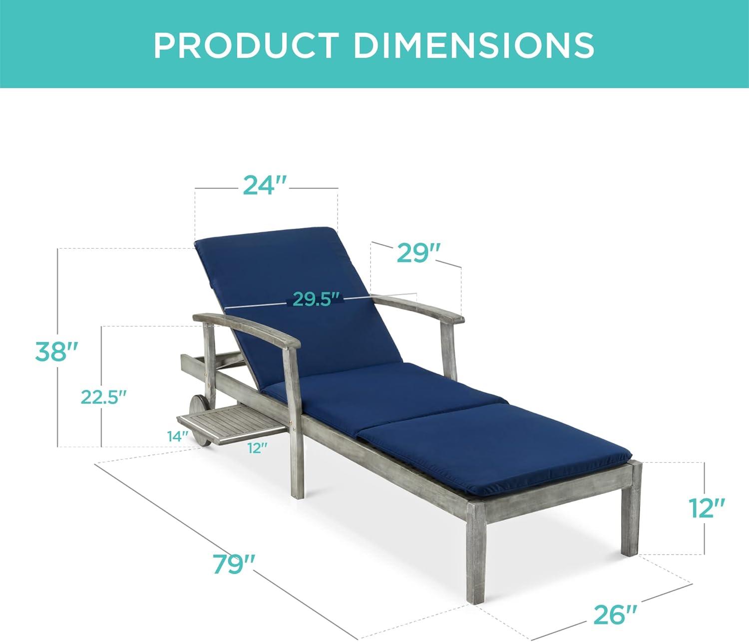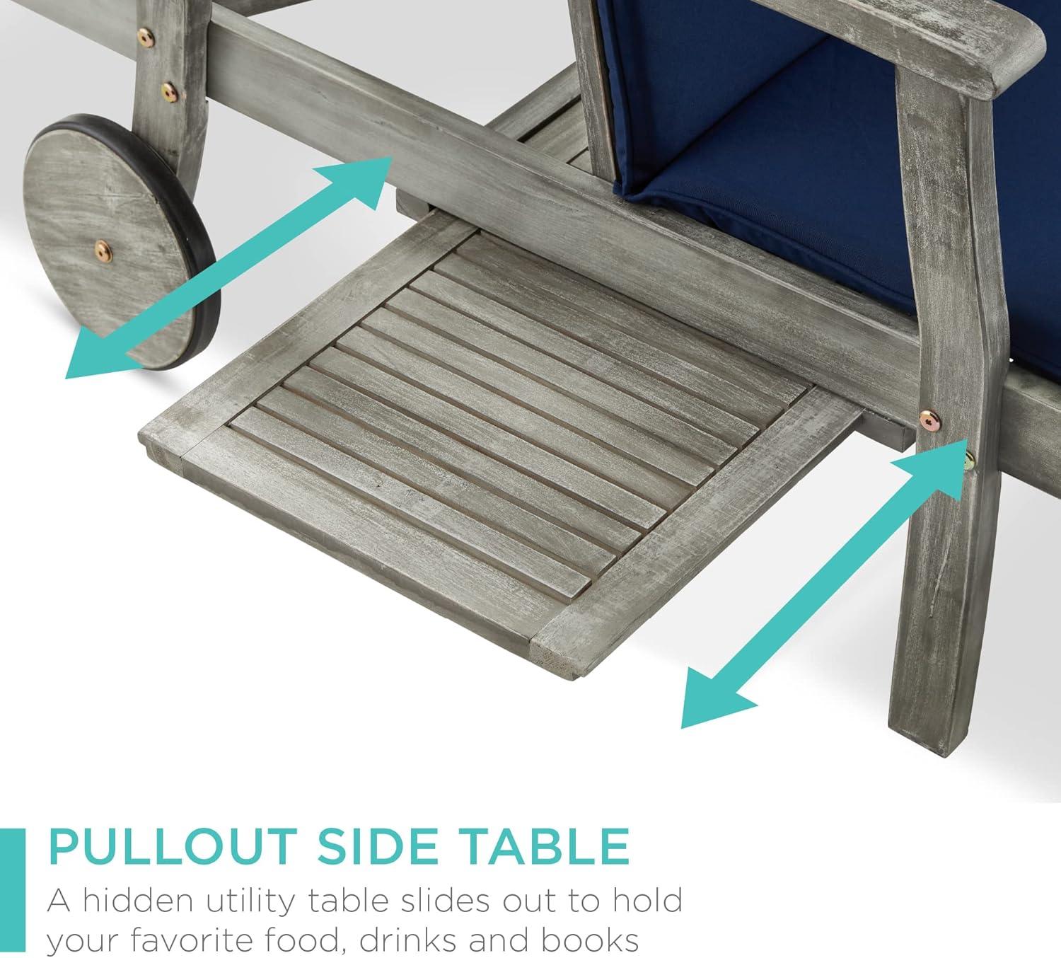 Best Choice Products 79x26in Acacia Wood Chaise Lounge Chair Recliner, Outdoor Furniture for Patio, Poolside w/Slide-Out Side Table, Foam-Padded Cushion, Adjustable Backrest, Wheels – Cream(Navy Blue)