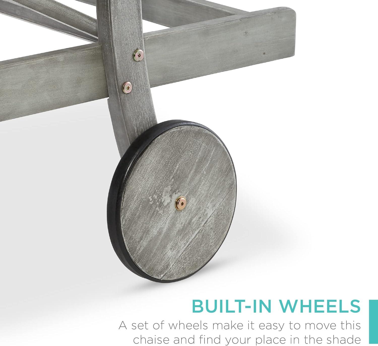 Best Choice Products 79x26in Acacia Wood Chaise Lounge Chair Recliner, Outdoor Furniture for Patio, Poolside w/Slide-Out Side Table, Foam-Padded Cushion, Adjustable Backrest, Wheels – Cream(Gray/Navy)