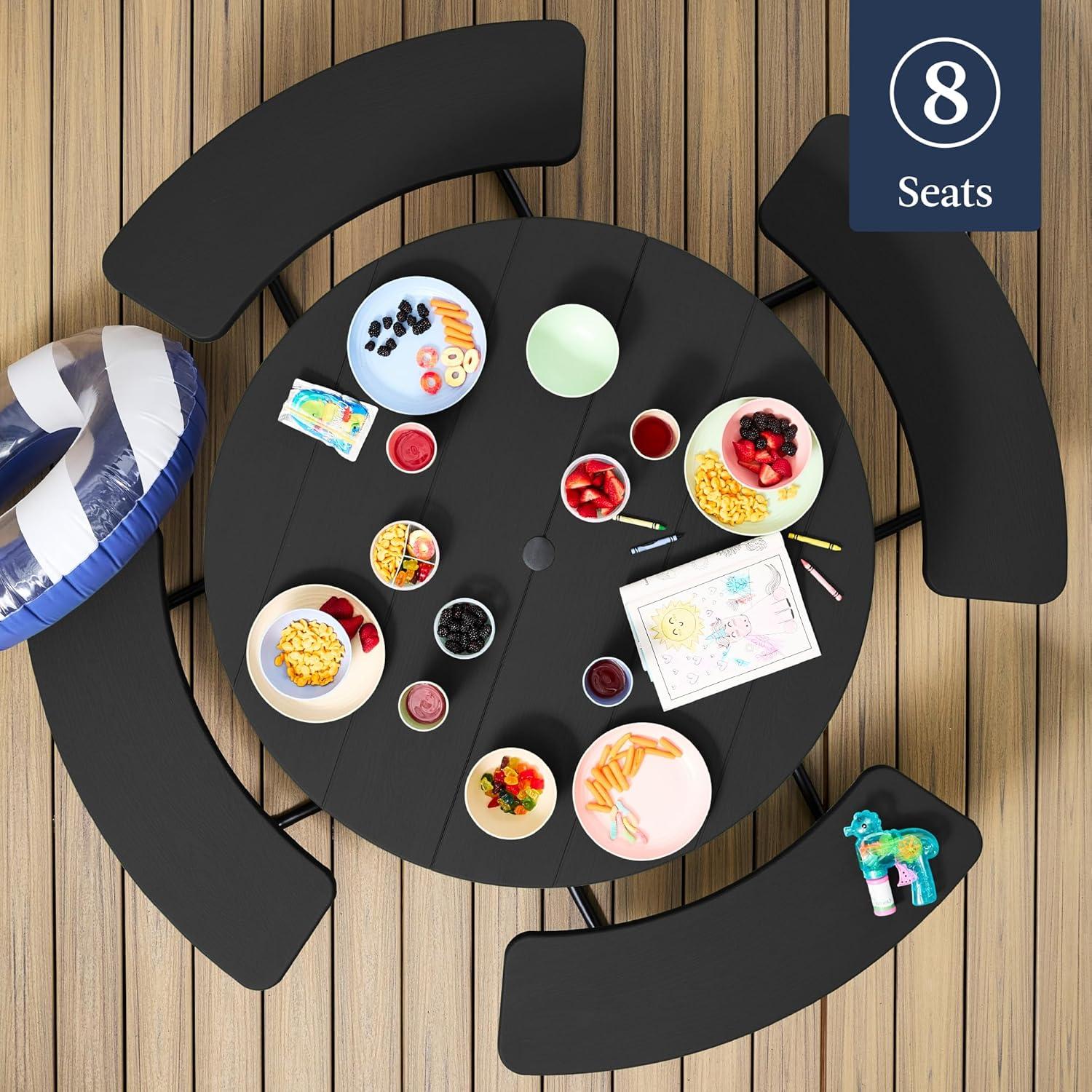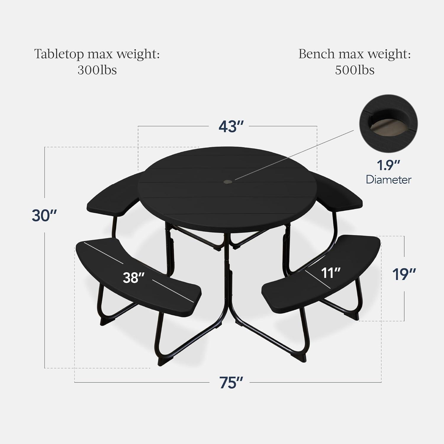 SPACIOUS 8-PERSON SEATING: A large, 75-inch diameter and built-in bench seats provide ample space for you and your guests to dine and enjoy the outdoors