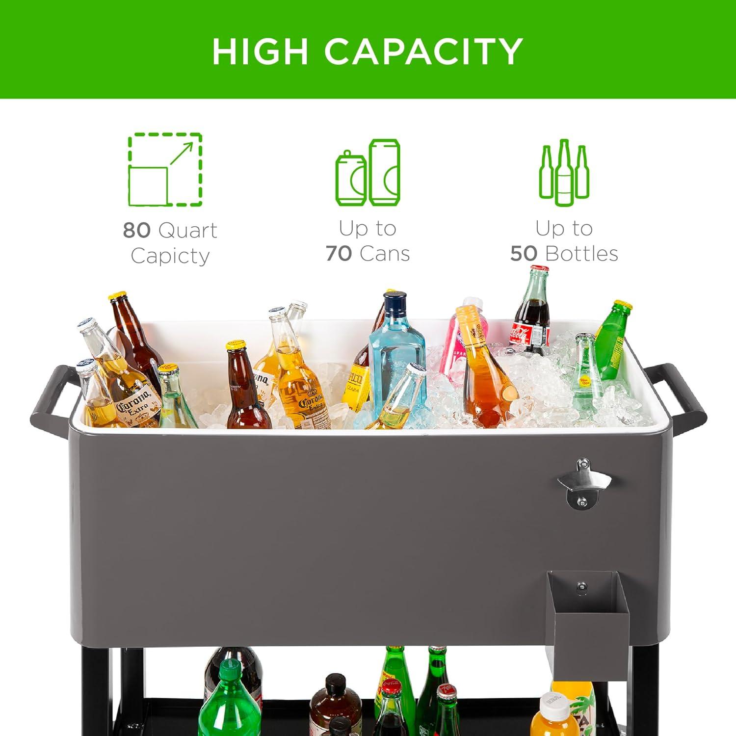 HIGH CAPACITY: A large, eighty-quart fill capacity can accommodate up to 50 bottles, 70 cans, or all of your favorite food and drinks