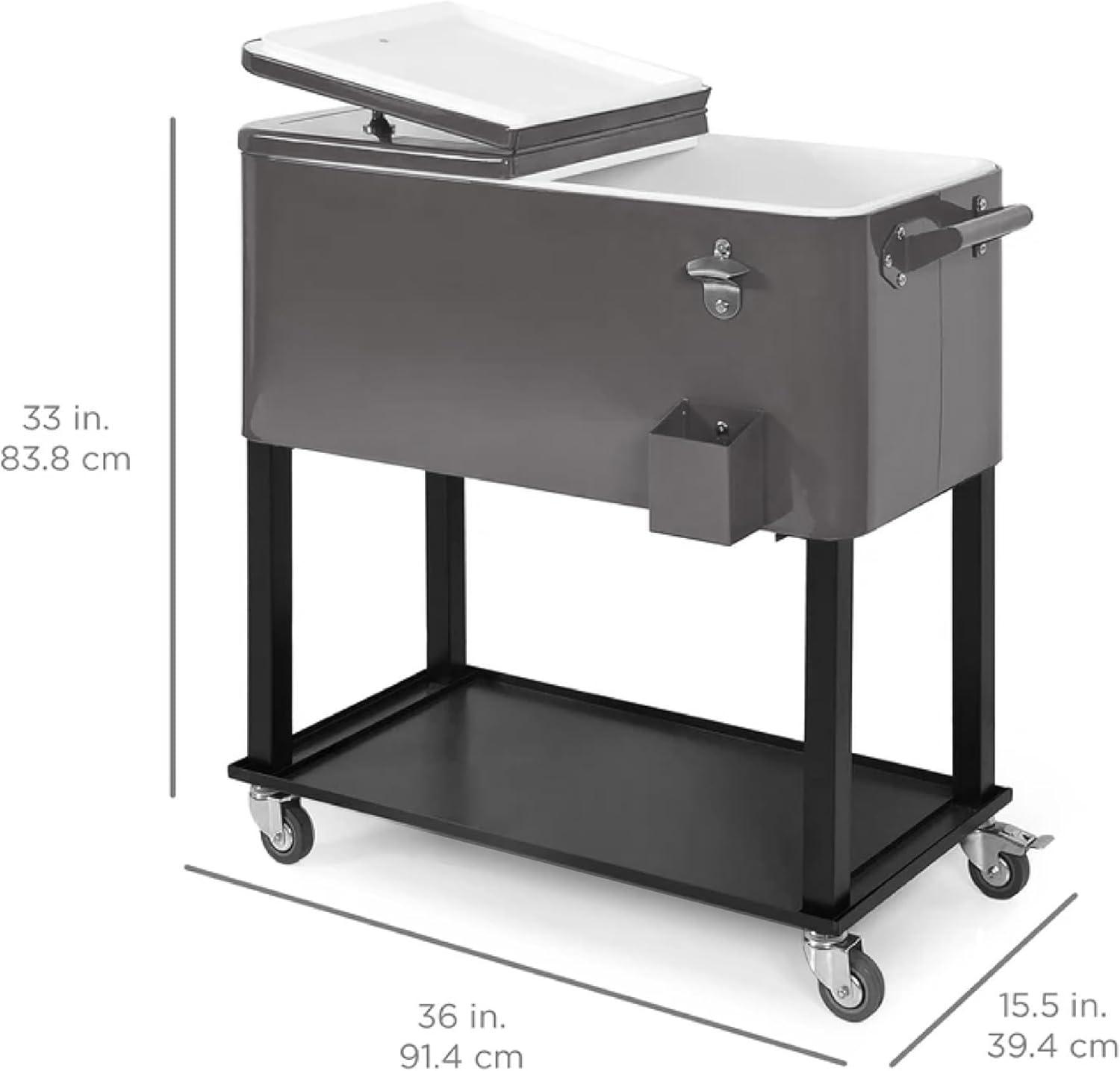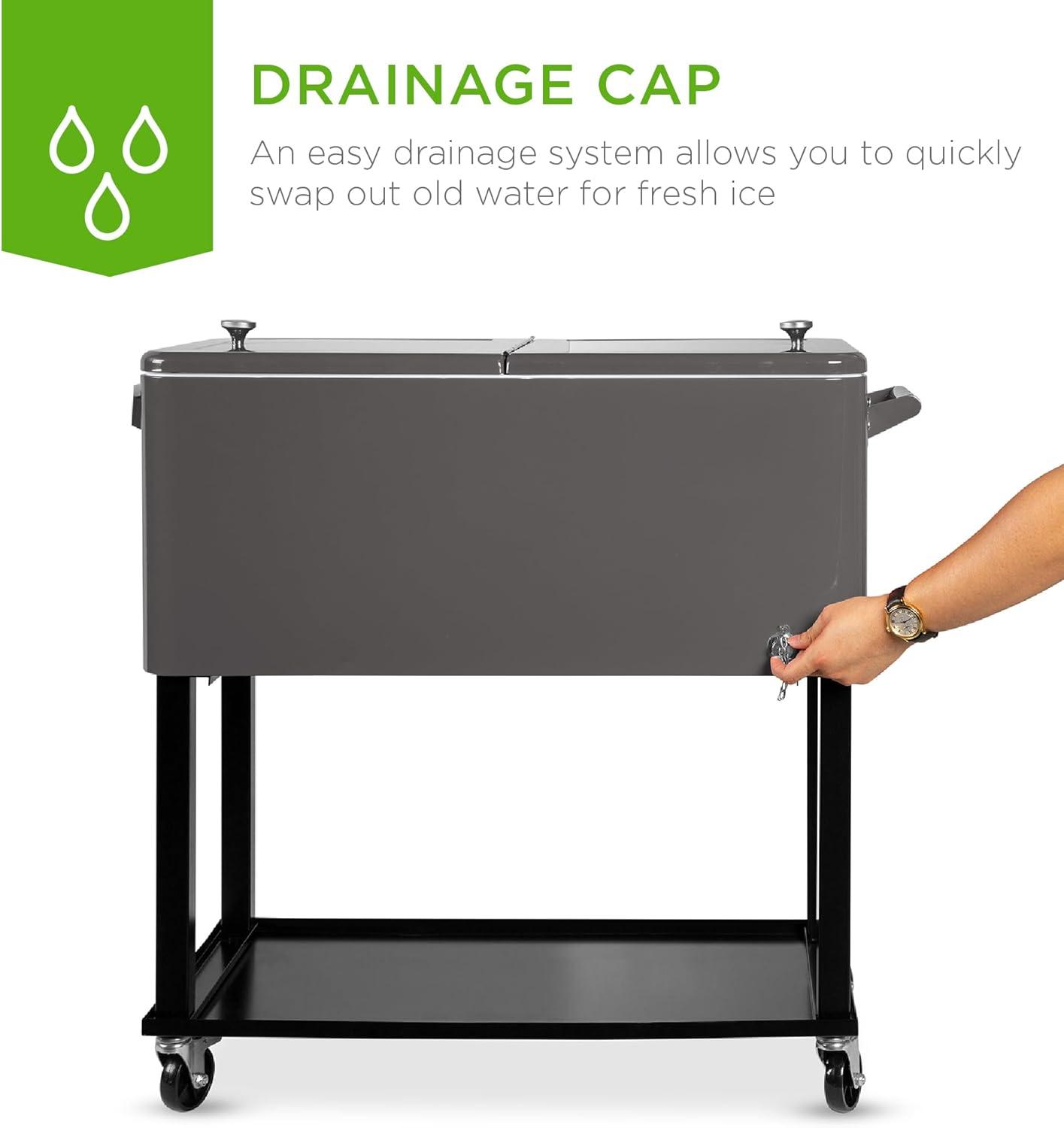 Best Choice Products 80-Quart Outdoor Steel Rolling Cooler Cart w/Ice Chest, Bottle Opener, Catch Tray, Drain Plug, Locking Wheels(Gray)