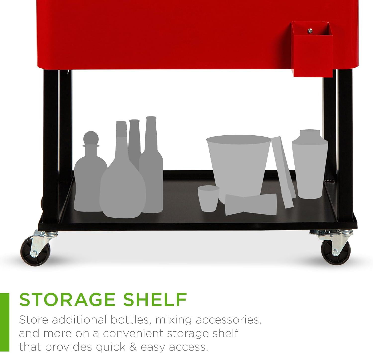 Best Choice Products 80-Quart Outdoor Steel Rolling Cooler Cart w/Ice Chest, Bottle Opener, Catch Tray, Drain Plug, Locking Wheels(Red)