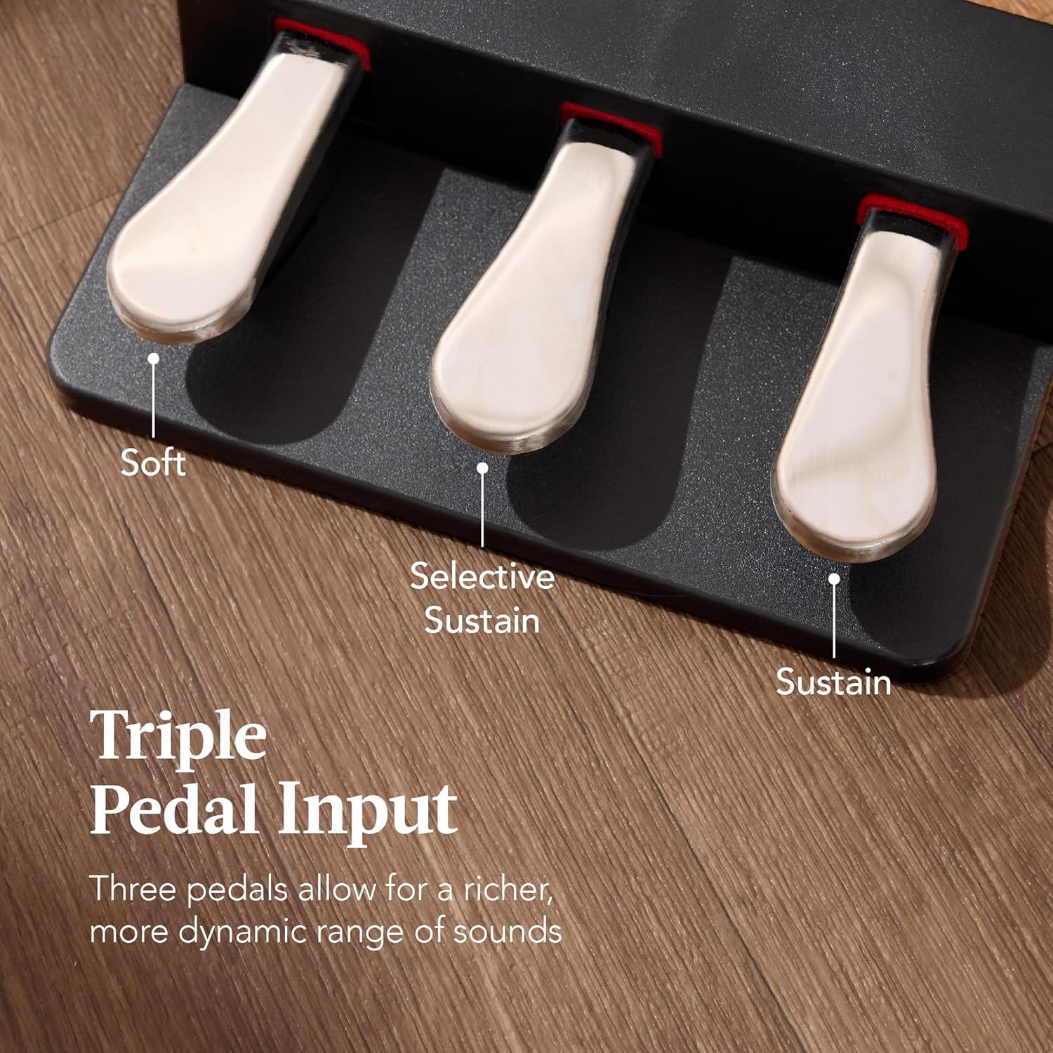 TRIPLE PEDAL INPUT: Plug in the pedals and enjoy! Use the soft pedal to quiet a note, the selective sustain to draw out specific notes, and the sustain to draw them all out for a full, dynamic experience.; OVERALL DIMENSIONS: 54″(L) x 13.5″(W) x 31″(H)