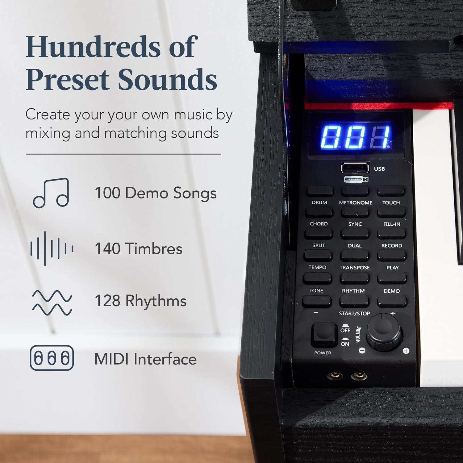 MODERN 88 KEY FULLY WEIGHTED DIGITAL PIANO: The highly responsive, hammer-action, and weight-sensitive keys perfectly mimic the feel of an acoustic piano for top-quality play