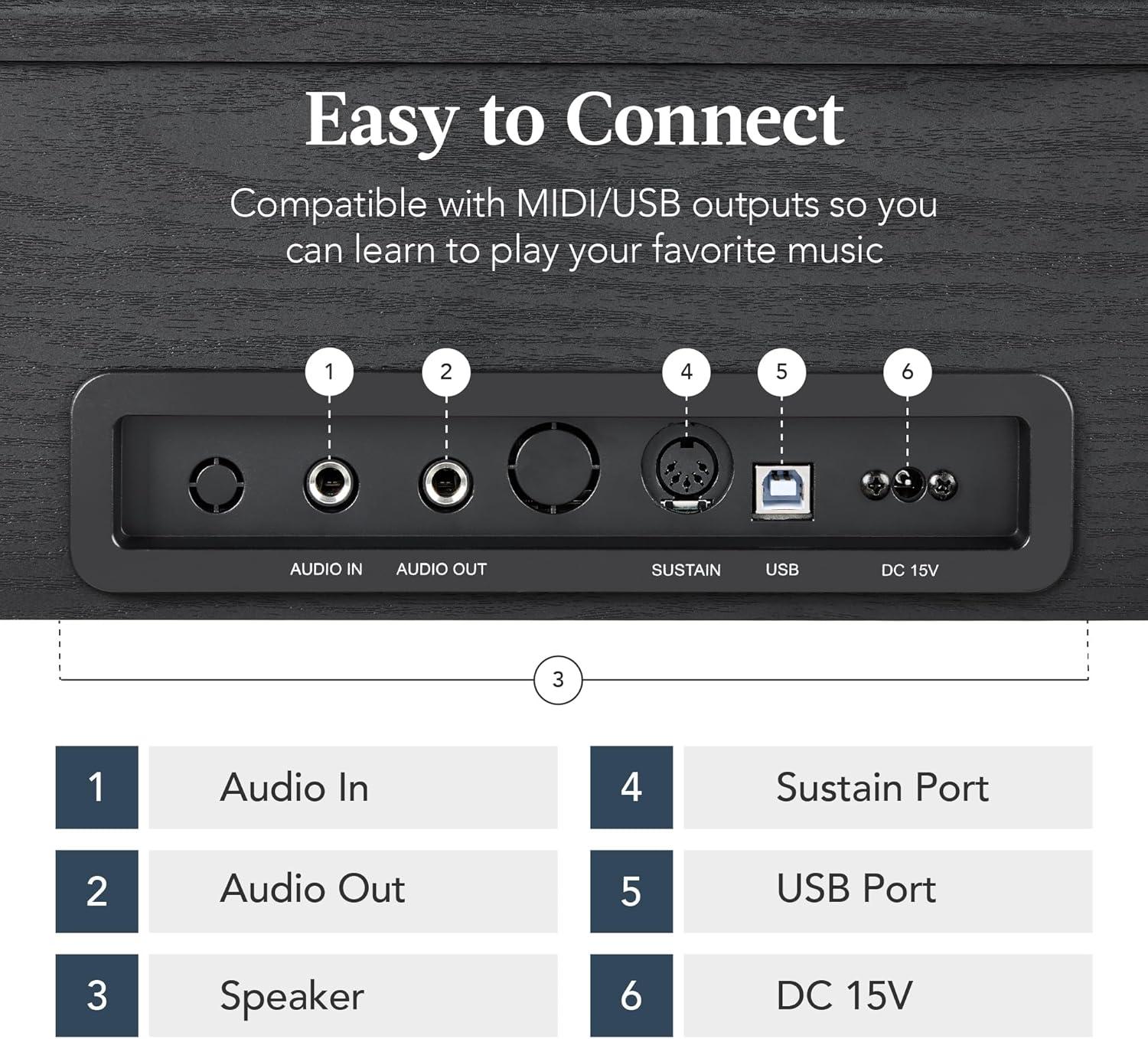 MEDIA COMPATIBILITY: Connect your devices via the MIDI/USB outputs to learn and play your favorite music with your own hands-use the two headphone jacks to enjoy a private jam session without disrupting others