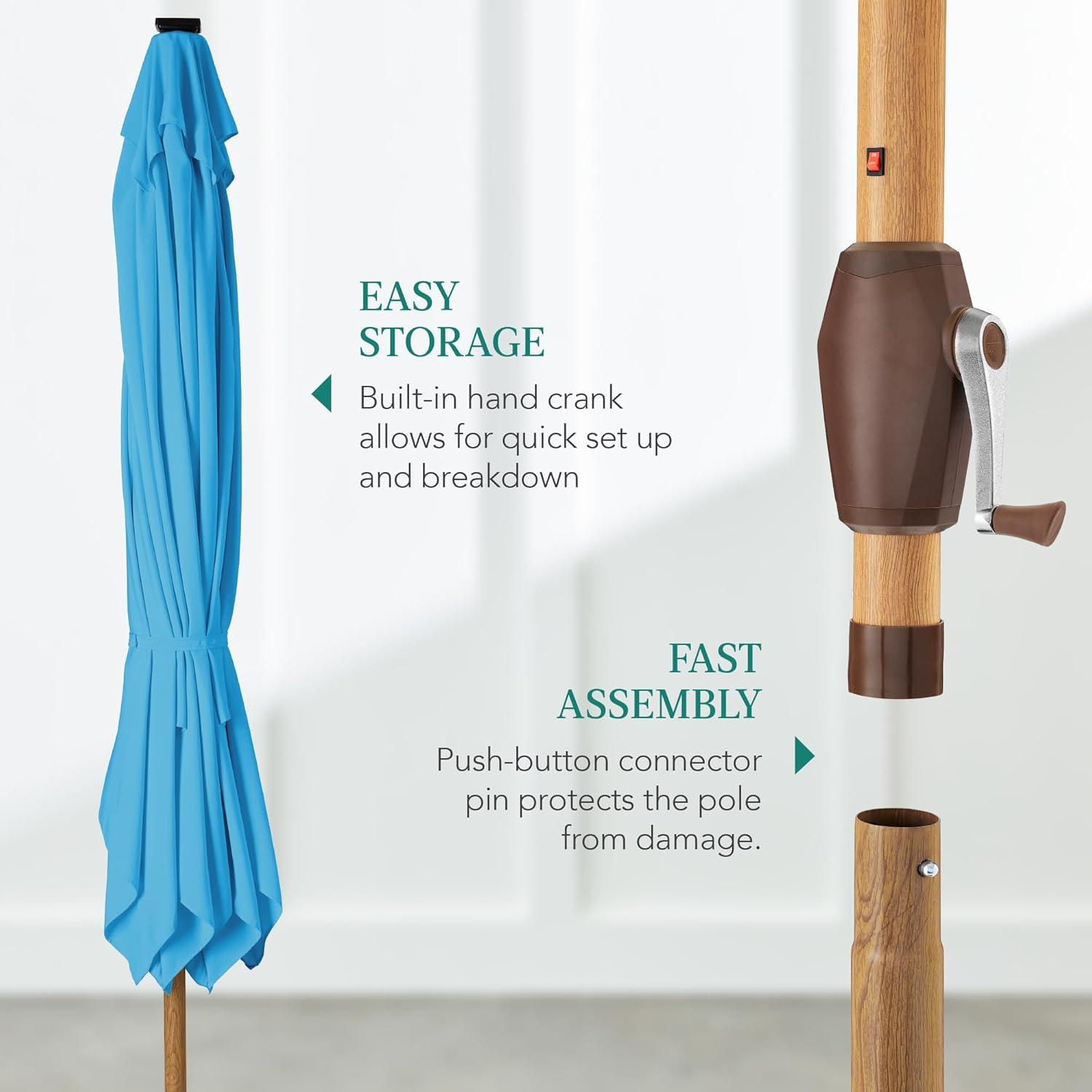 Best Choice Products 9ft Deep Square Solar Powered LED Lighted Patio Umbrella w/Woodgrain Pattern, UV-Resistant Fabric, Hand Crank – Navy Blue(Sky Blue)