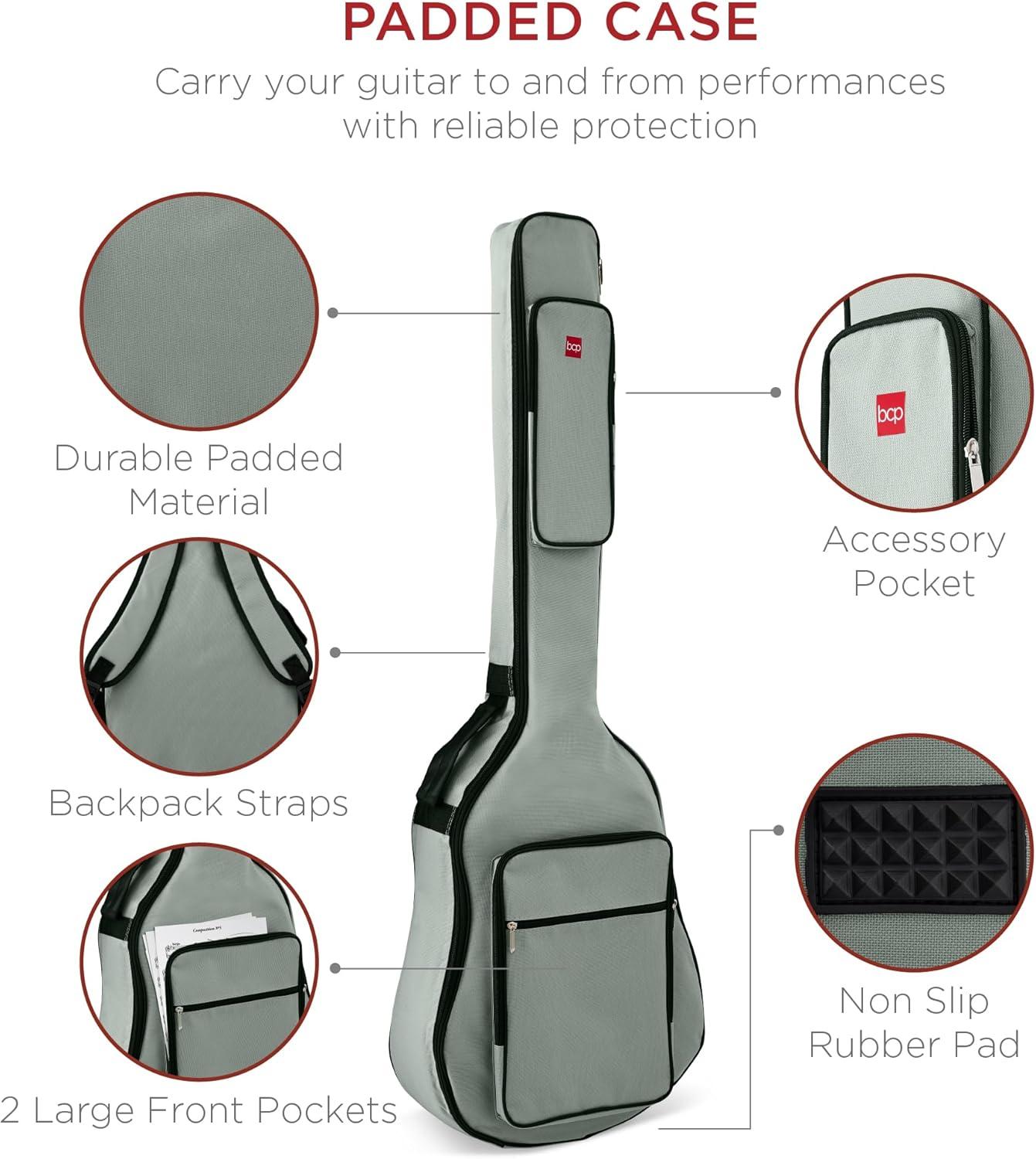 PADDED CASE: A convenient carrying case comes with backpack straps, a durable padded material lining, three storage pockets, and a non-slip rubber pad for quick access to your instrument; BASS GUITAR DIMENSIONS: 15.5″(L) x 4.5″(W) x 43.7″(H)