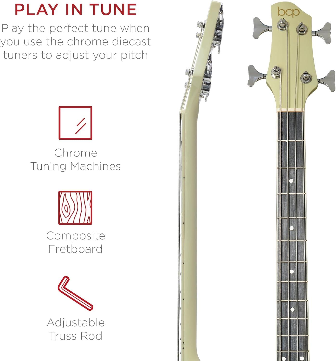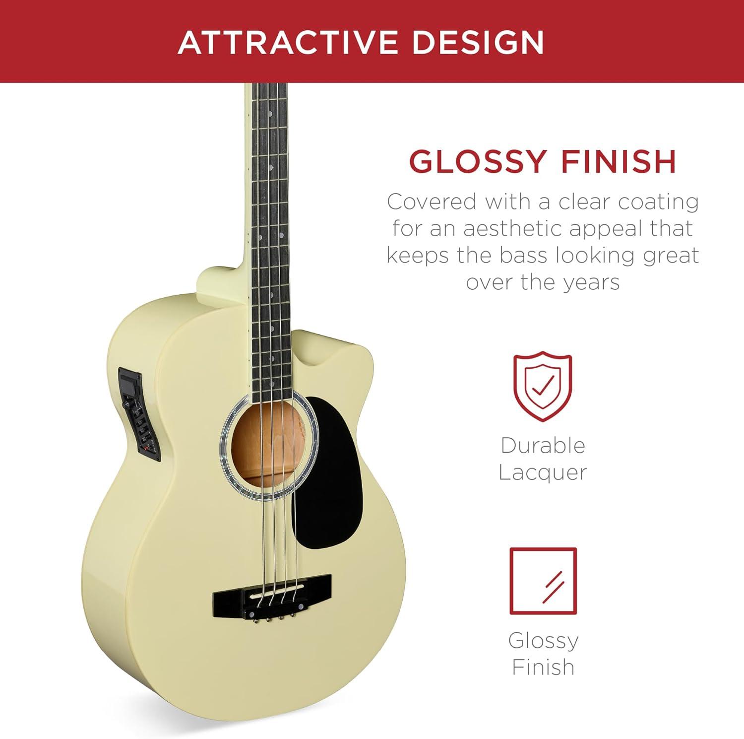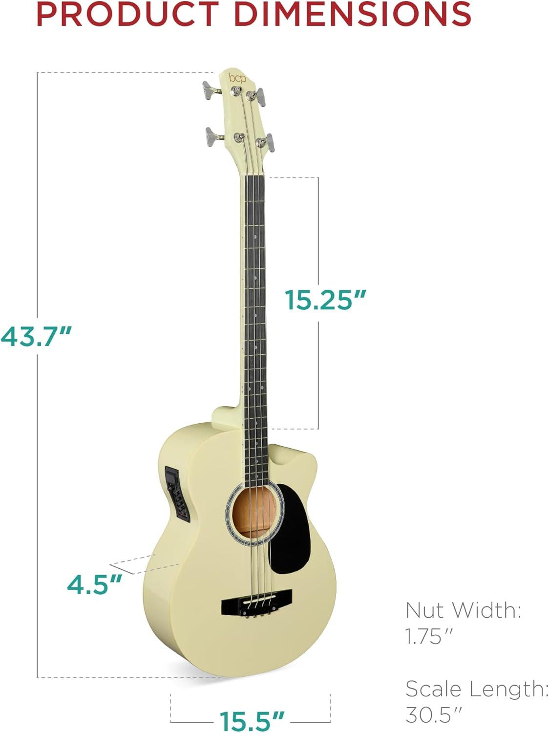Best Choice Products Acoustic Electric Bass Guitar, Full Size 4 String, Fretted Bass Guitar w/Padded Gig Bag – Black(Cream White)