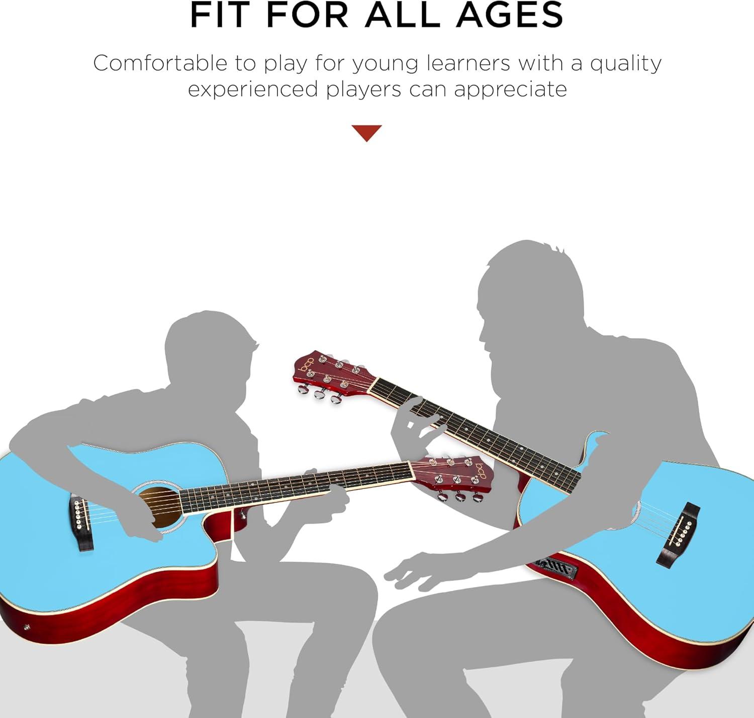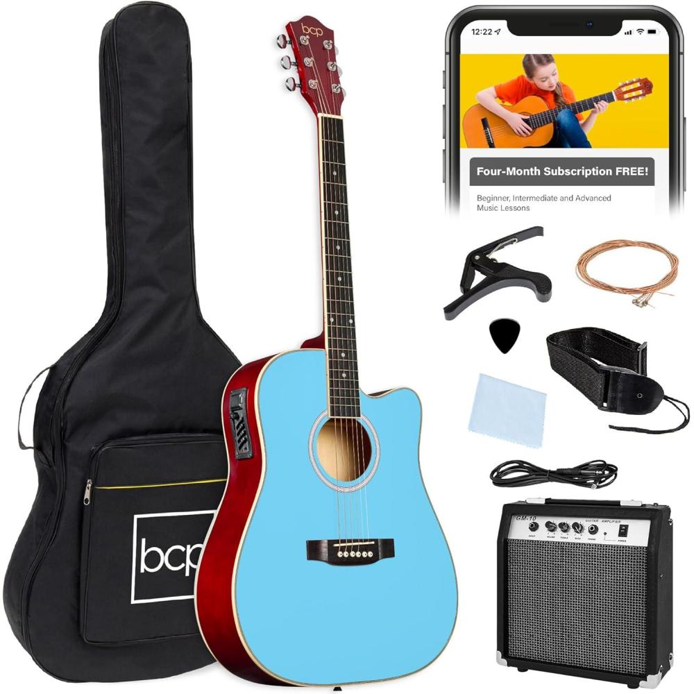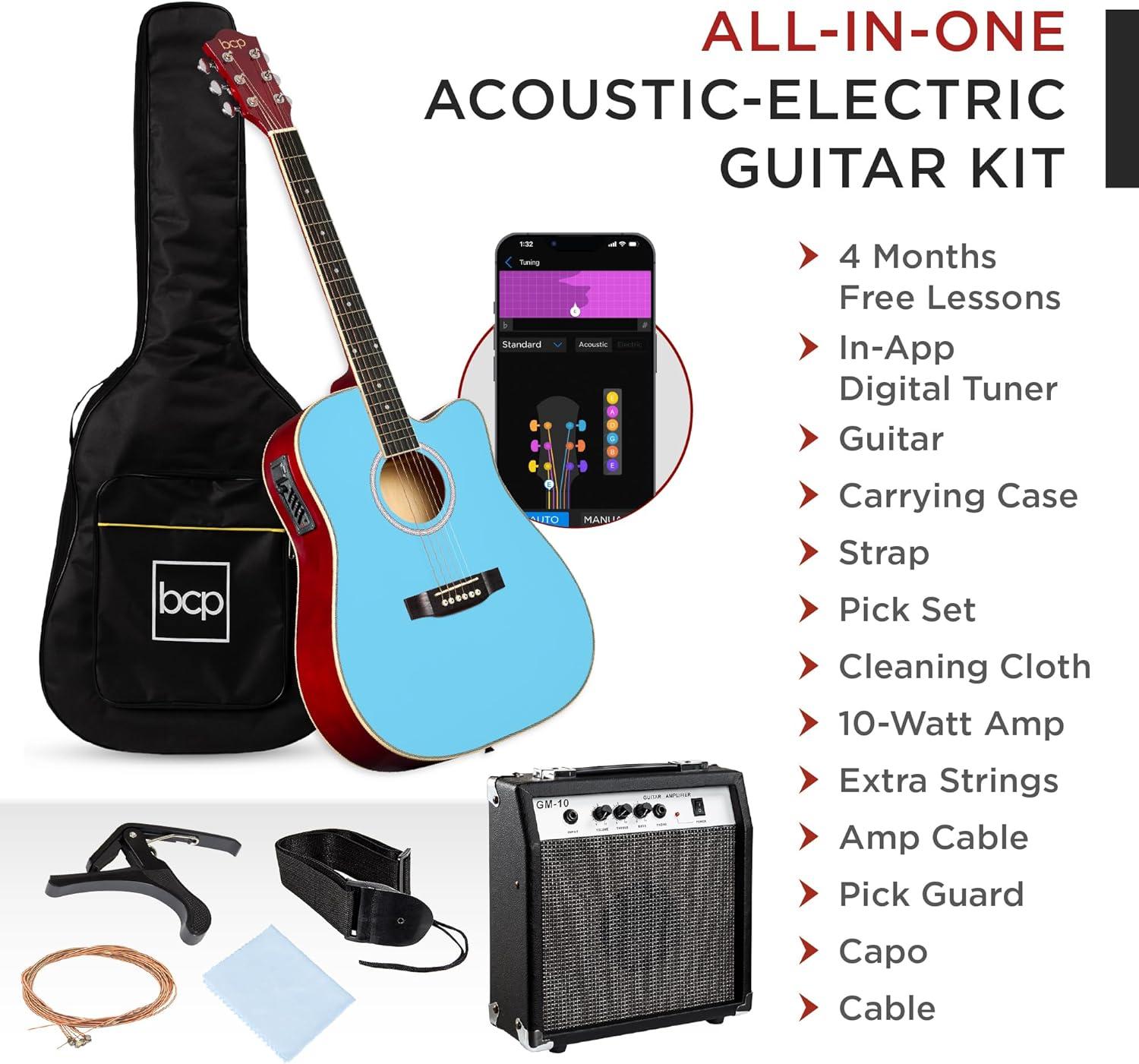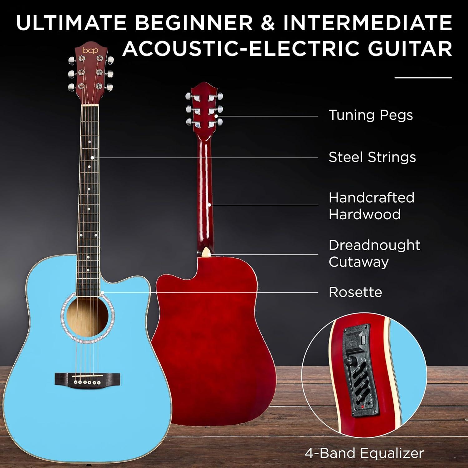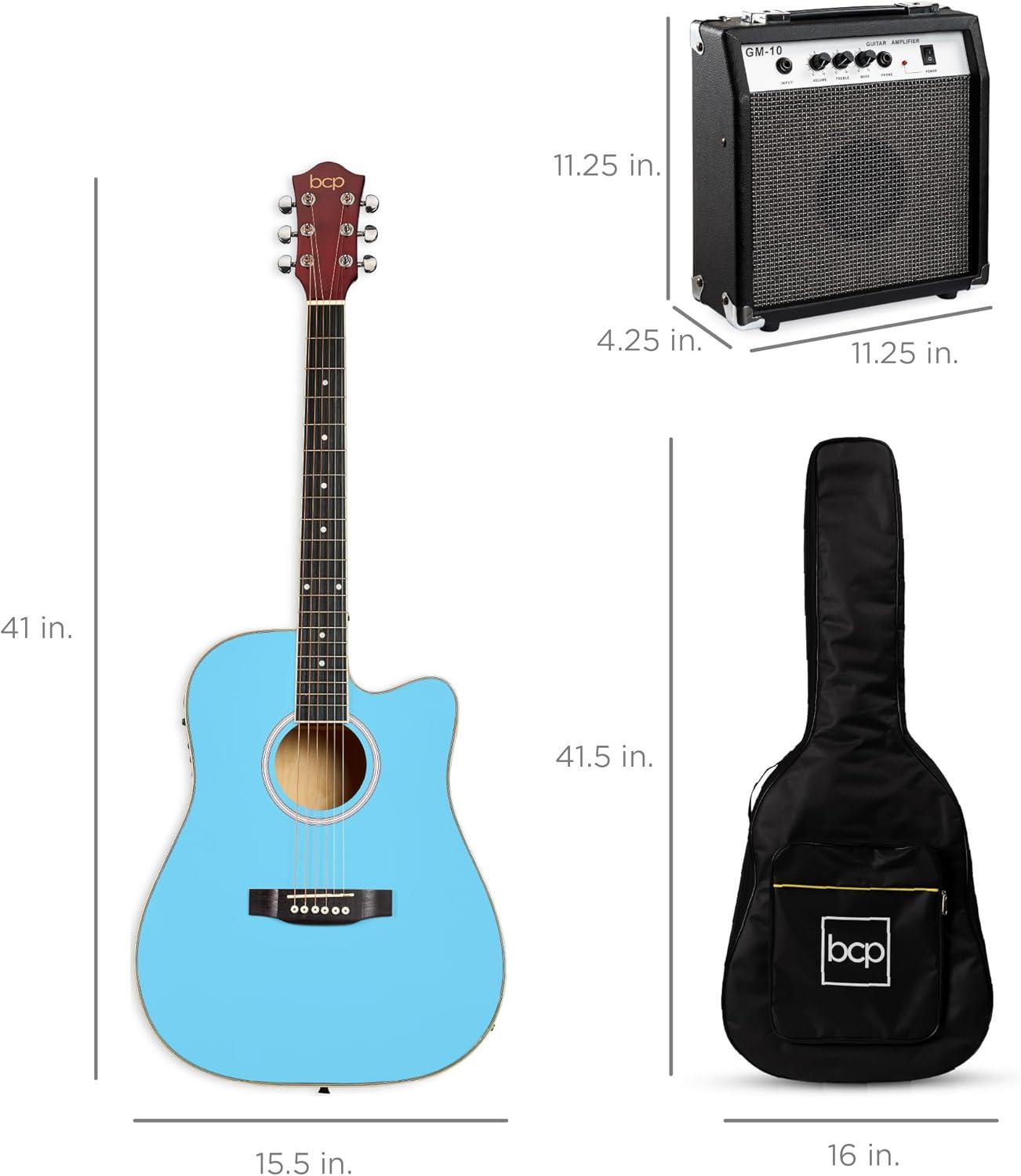 Best Choice Products Beginner Acoustic Electric Guitar Starter Set w/ 41in, All Wood Cutaway Design, Gig Bag, Strap, Picks – Blue(Sky Blue)