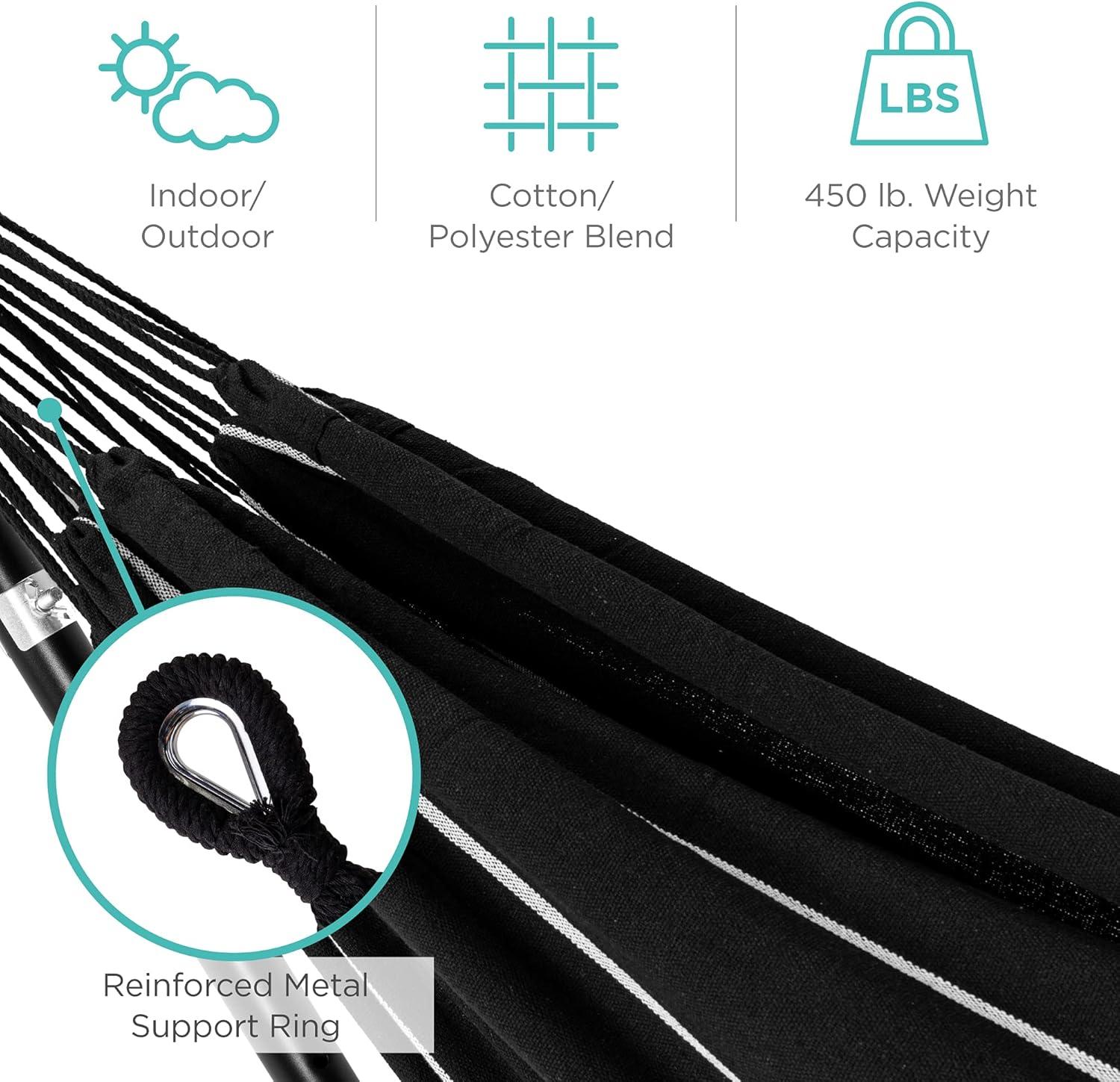 Best Choice Products Double Hammock with Steel Stand, Indoor Outdoor Brazilian-Style Cotton Bed w/Carrying Bag, 2-Person Capacity – Ocean(Onyx)