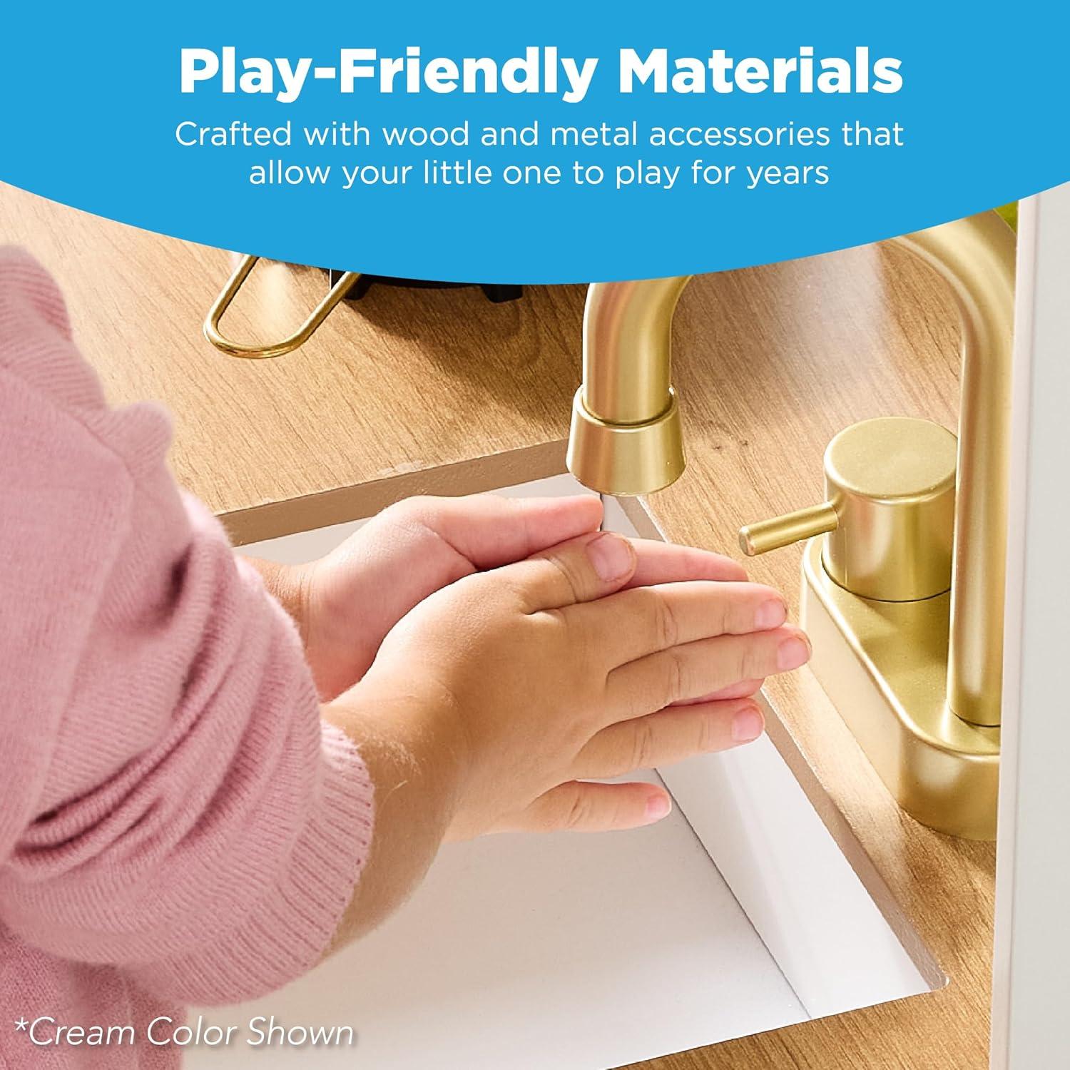 BUILT-IN TOY STORAGE: Keep your play area neat and tidy with this kids' kitchen, designed with ample storage space for accessories and other toys, making cleanup quick and easy