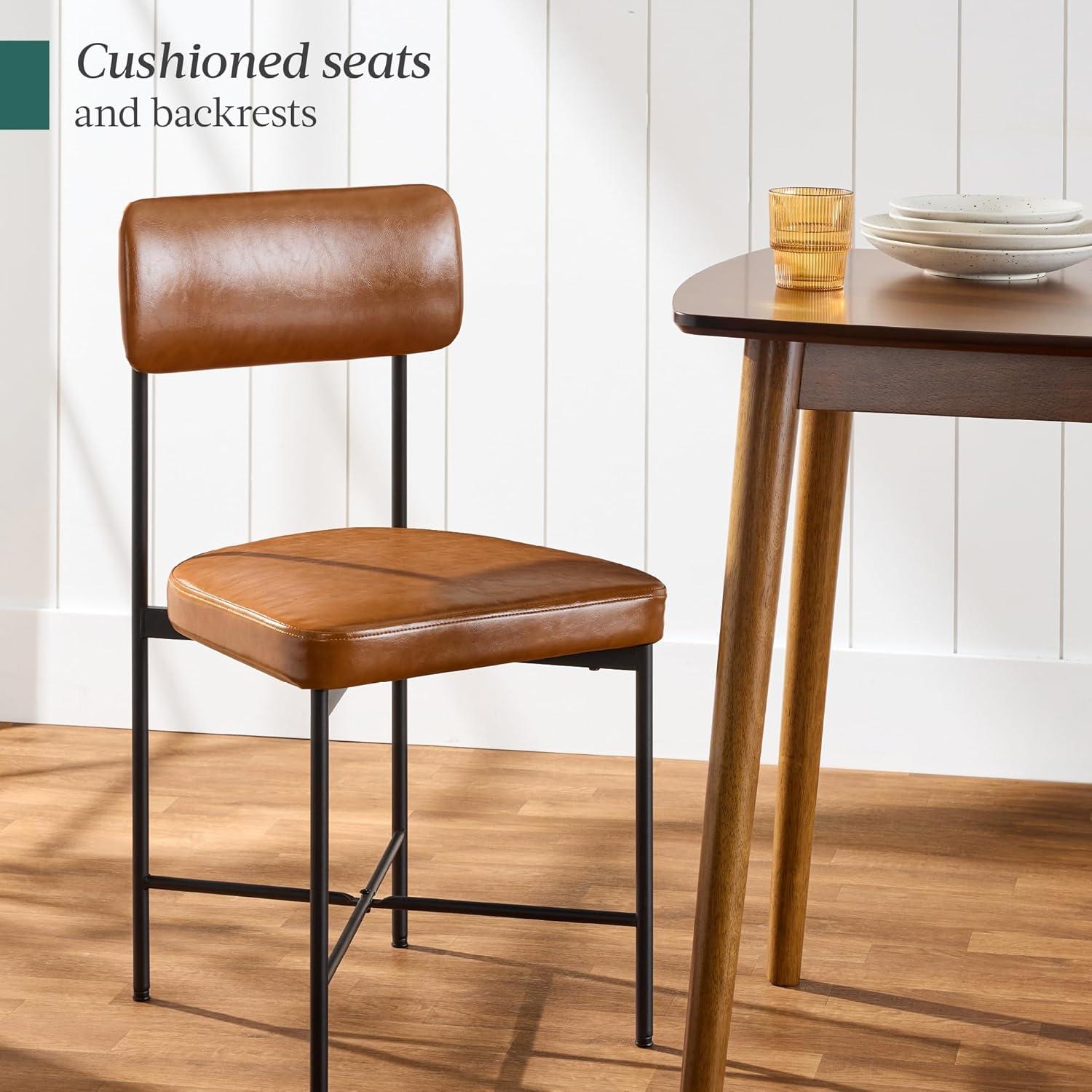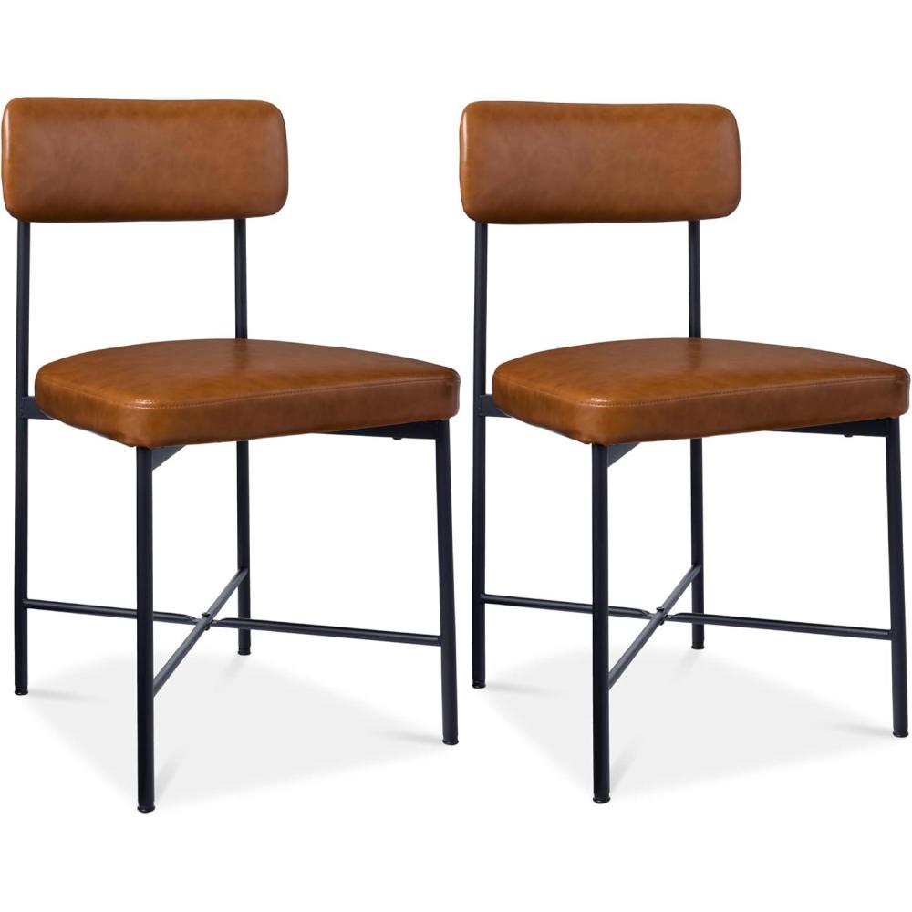 Best Choice Products Faux Leather Dining Chair Set of 2, Standard Height, Metal Frame Padded Cushions for Kitchen and Dining - Camel Brown(Camel Brown)