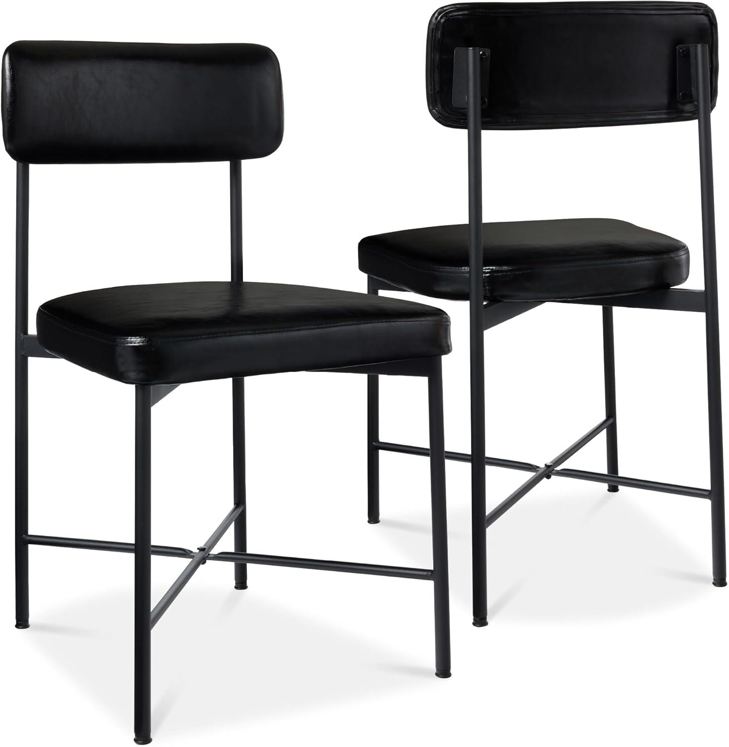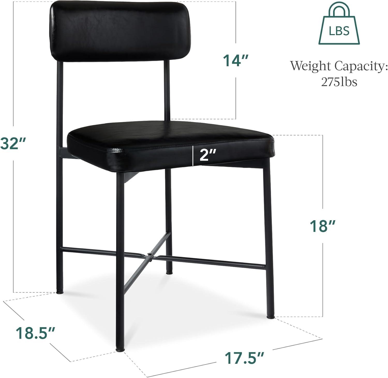 Best Choice Products Faux Leather Dining Chair Set of 2, Standard Height, Metal Frame Padded Cushions for Kitchen and Dining – Camel Brown(Midnight Black)