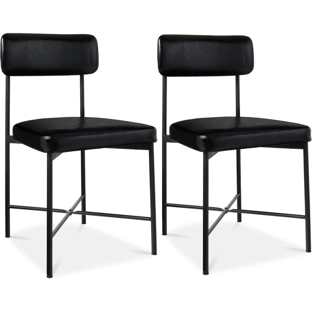 TRANSITIONAL DESIGN: Featuring a sleek and stylish faux leather finish, these dining chairs fuse traditional and modern elements