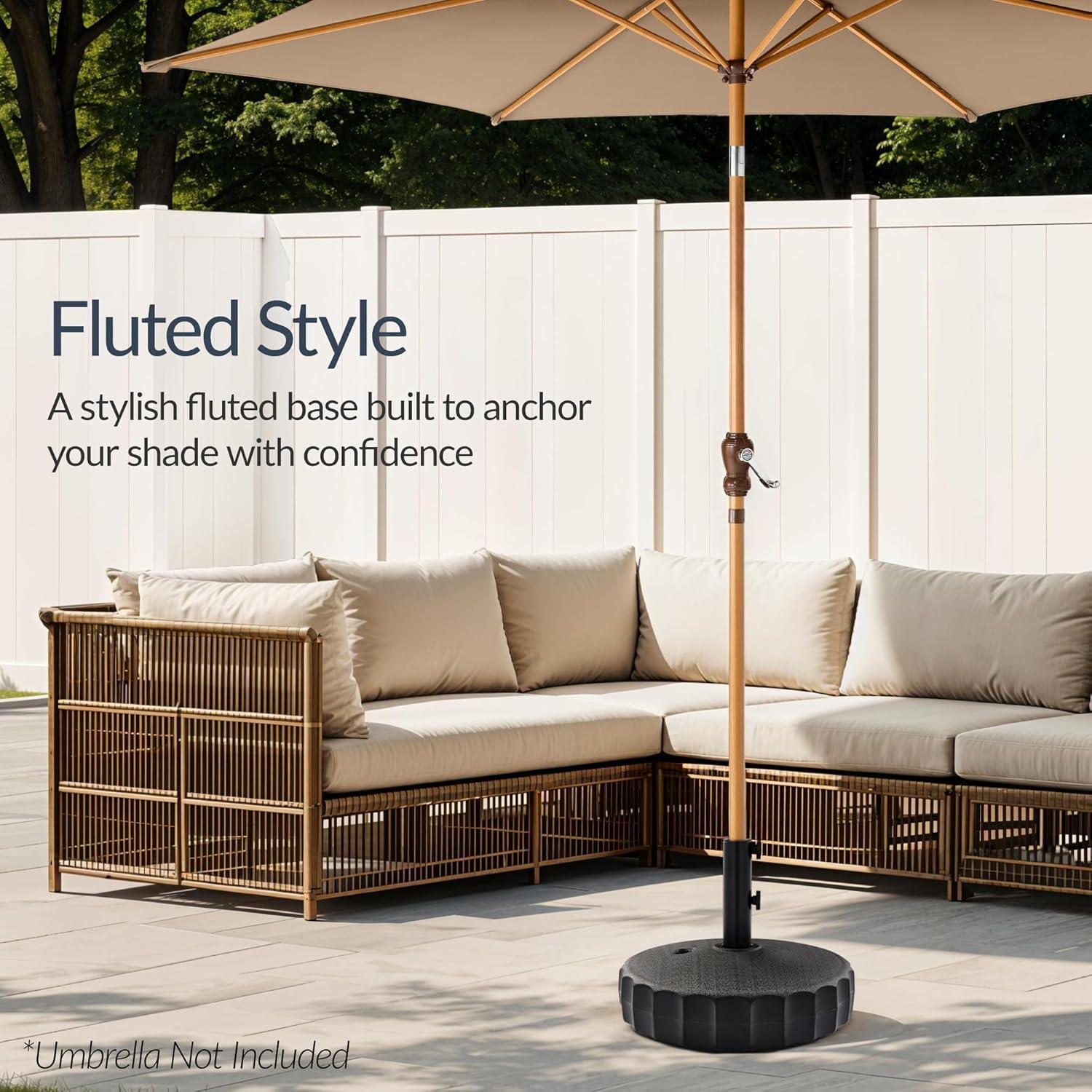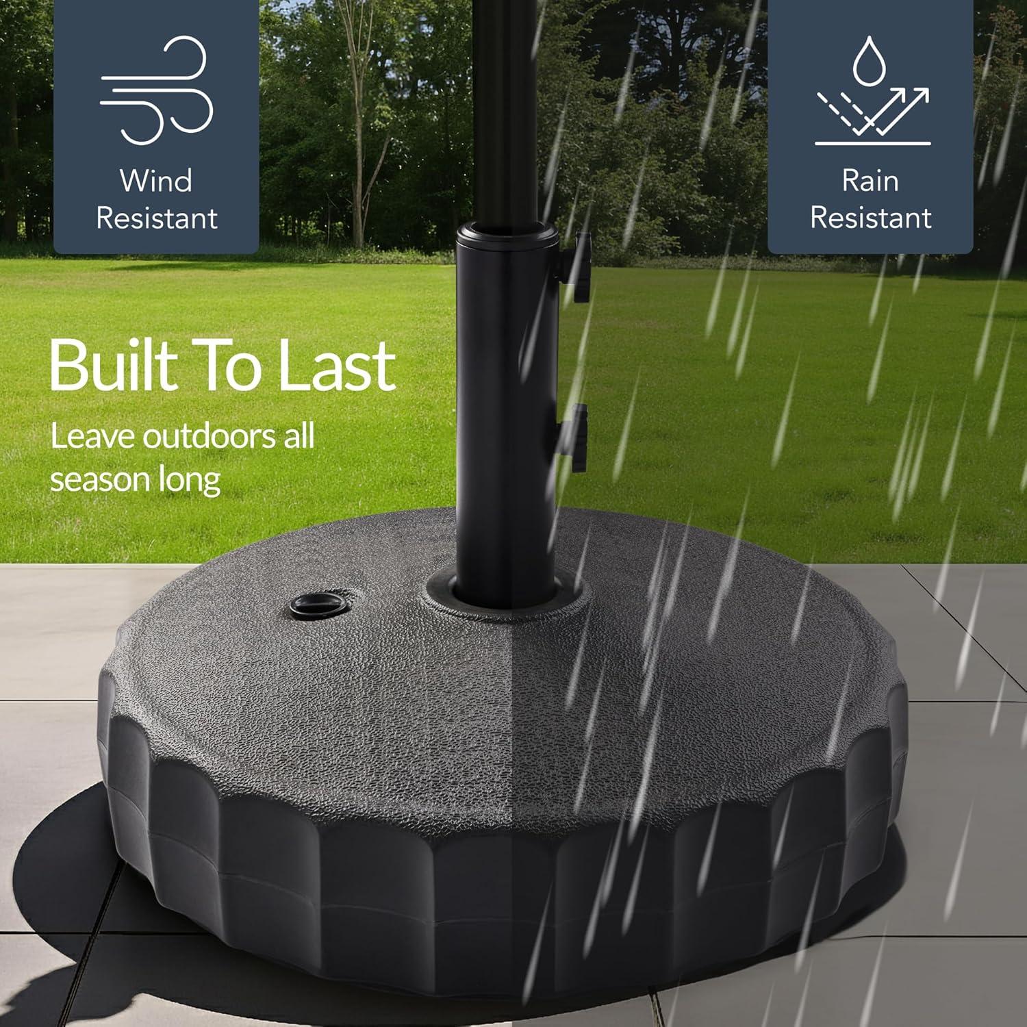 Best Choice Products Fillable Umbrella Base Stand Round Sunburst Plastic Patio Umbrella Base Stand, Pole Holder for Outdoor, Lawn w/ 55lbs Weight Capacity, Adjustment Knob(Black – Fluted)