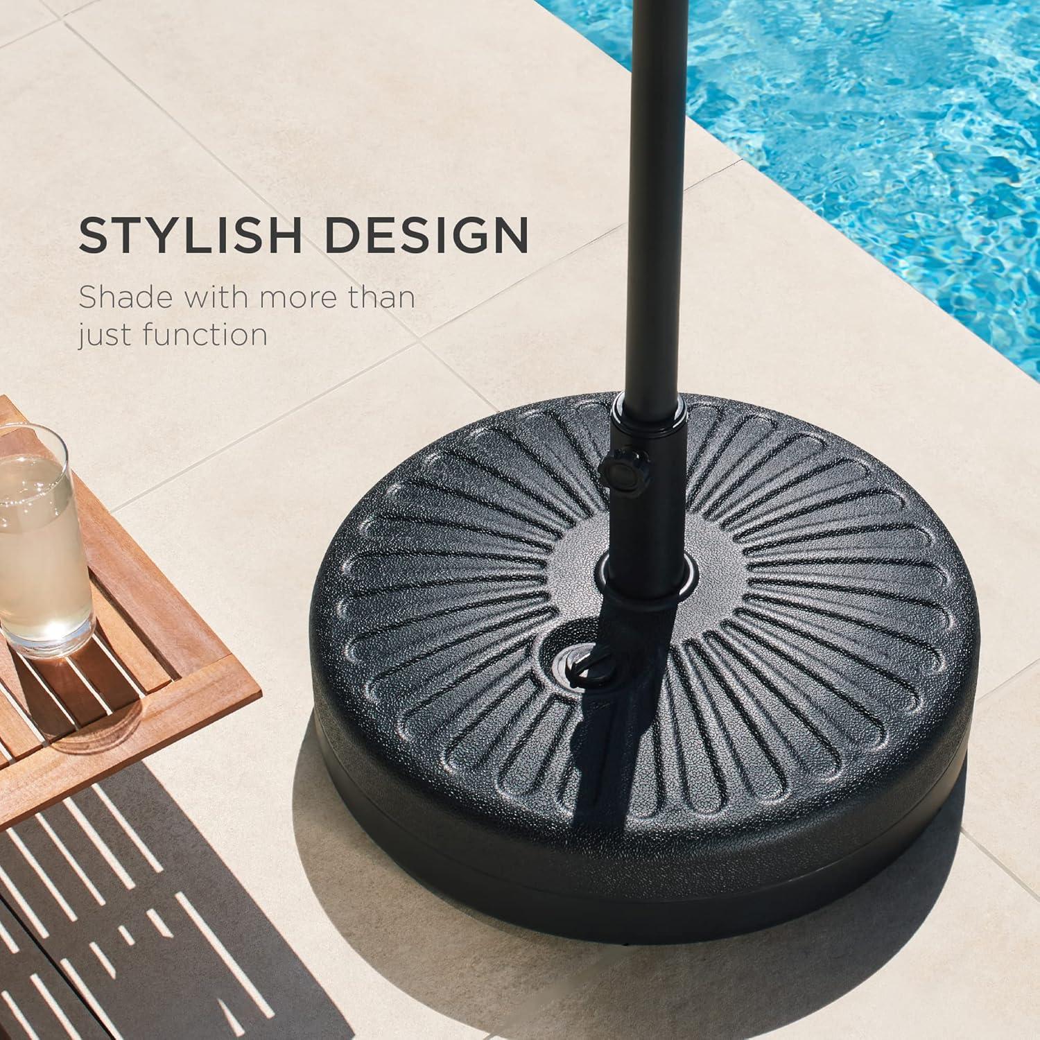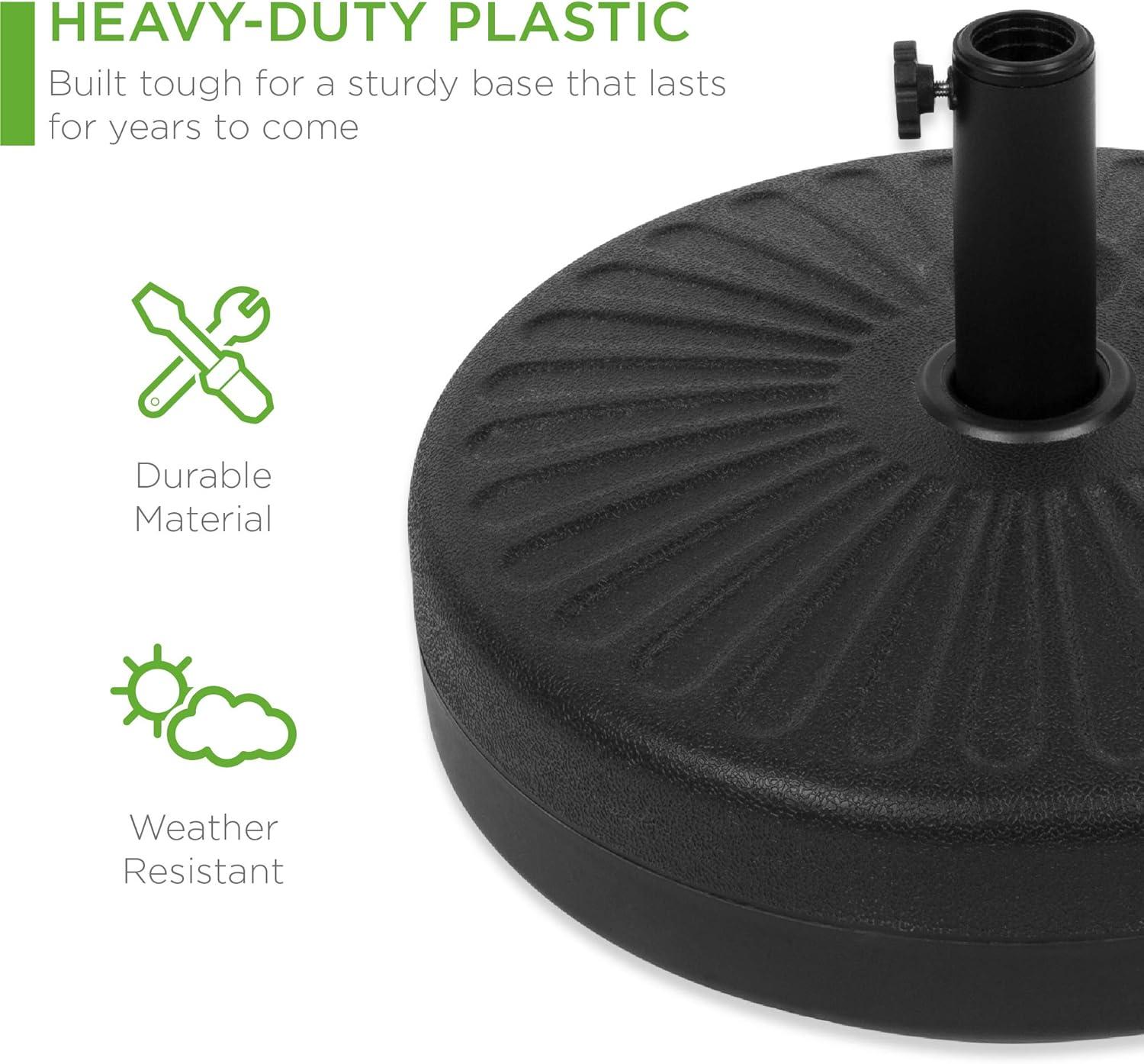 Best Choice Products Fillable Umbrella Base Stand Round Sunburst Plastic Patio Umbrella Base Stand, Pole Holder for Outdoor, Lawn w/ 55lbs Weight Capacity, Adjustment Knob(Black – Fluted)