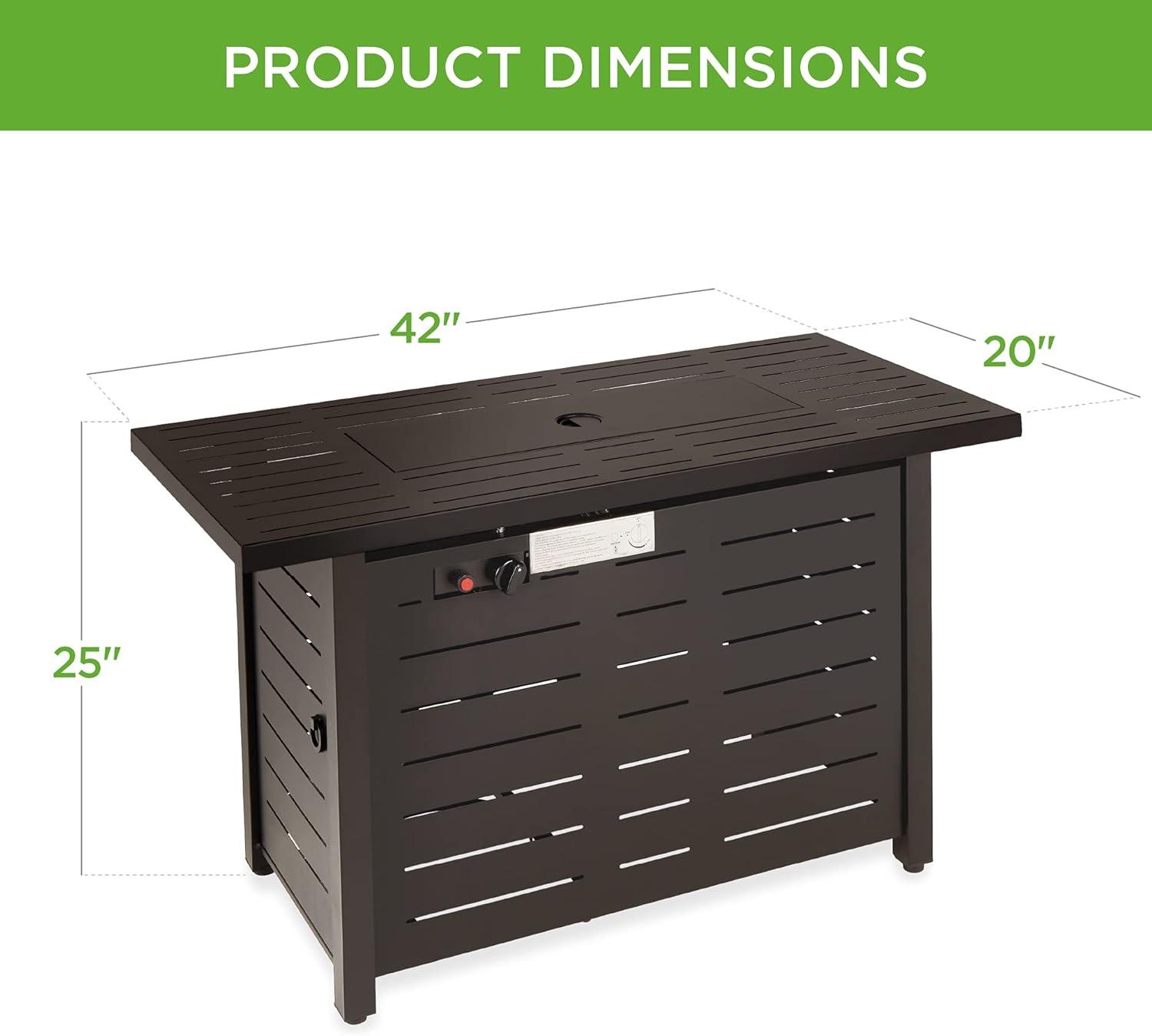 Best Choice Products Fire Pit Table 42in 50,000 BTU Rectangular Steel Propane Gas for Outdoor, Patio w/Burner Lid, Auto Ignition, Hideaway Tank Storage, Cover, Glass Beads – Dark Brown(Dark Brown)