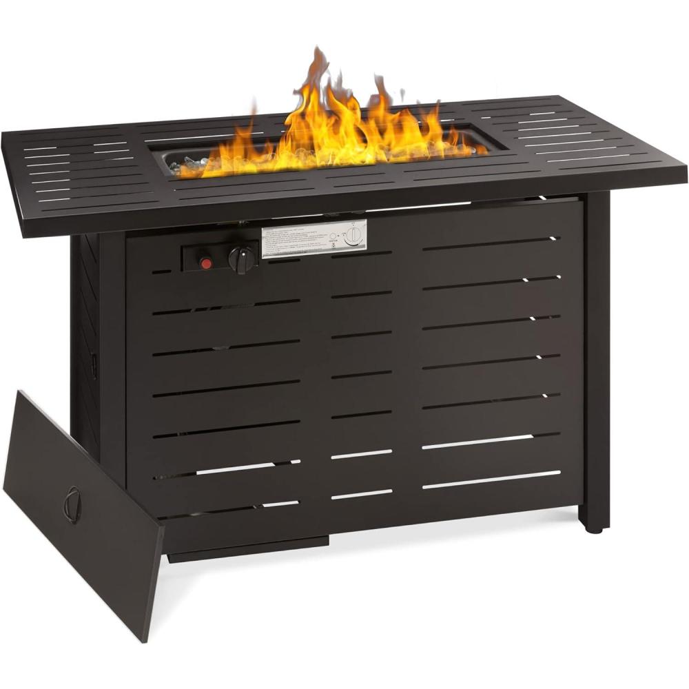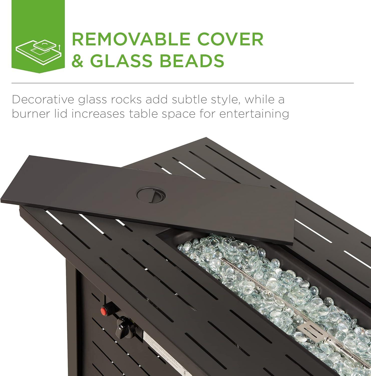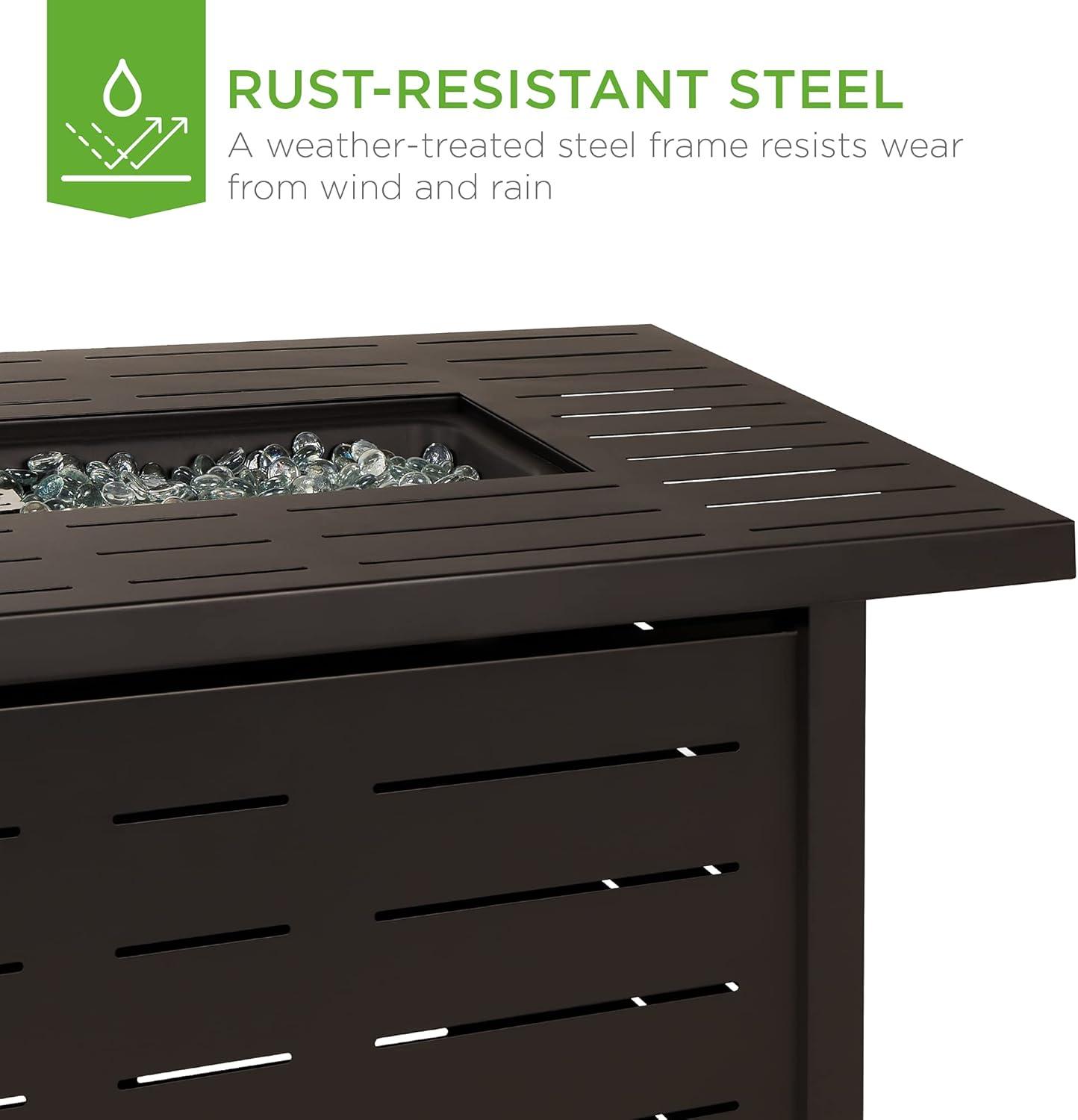 Best Choice Products Fire Pit Table 42in 50,000 BTU Rectangular Steel Propane Gas for Outdoor, Patio w/Burner Lid, Auto Ignition, Hideaway Tank Storage, Cover, Glass Beads - Dark Brown(Dark Brown)