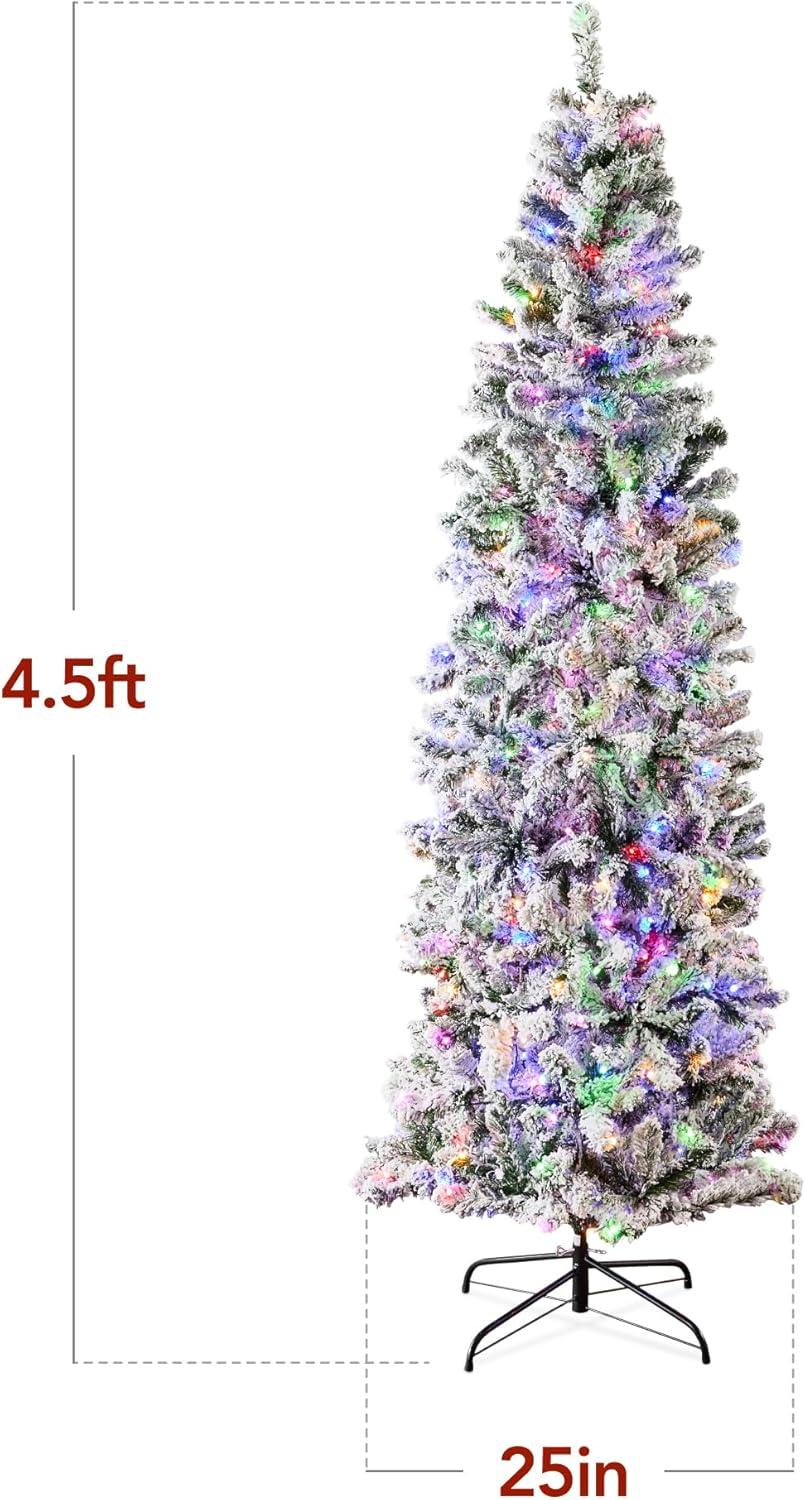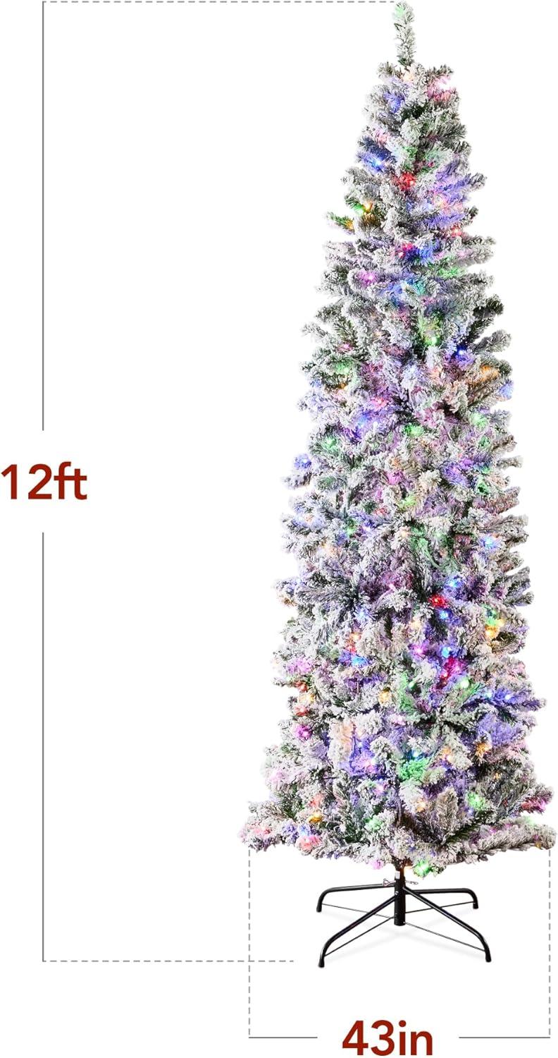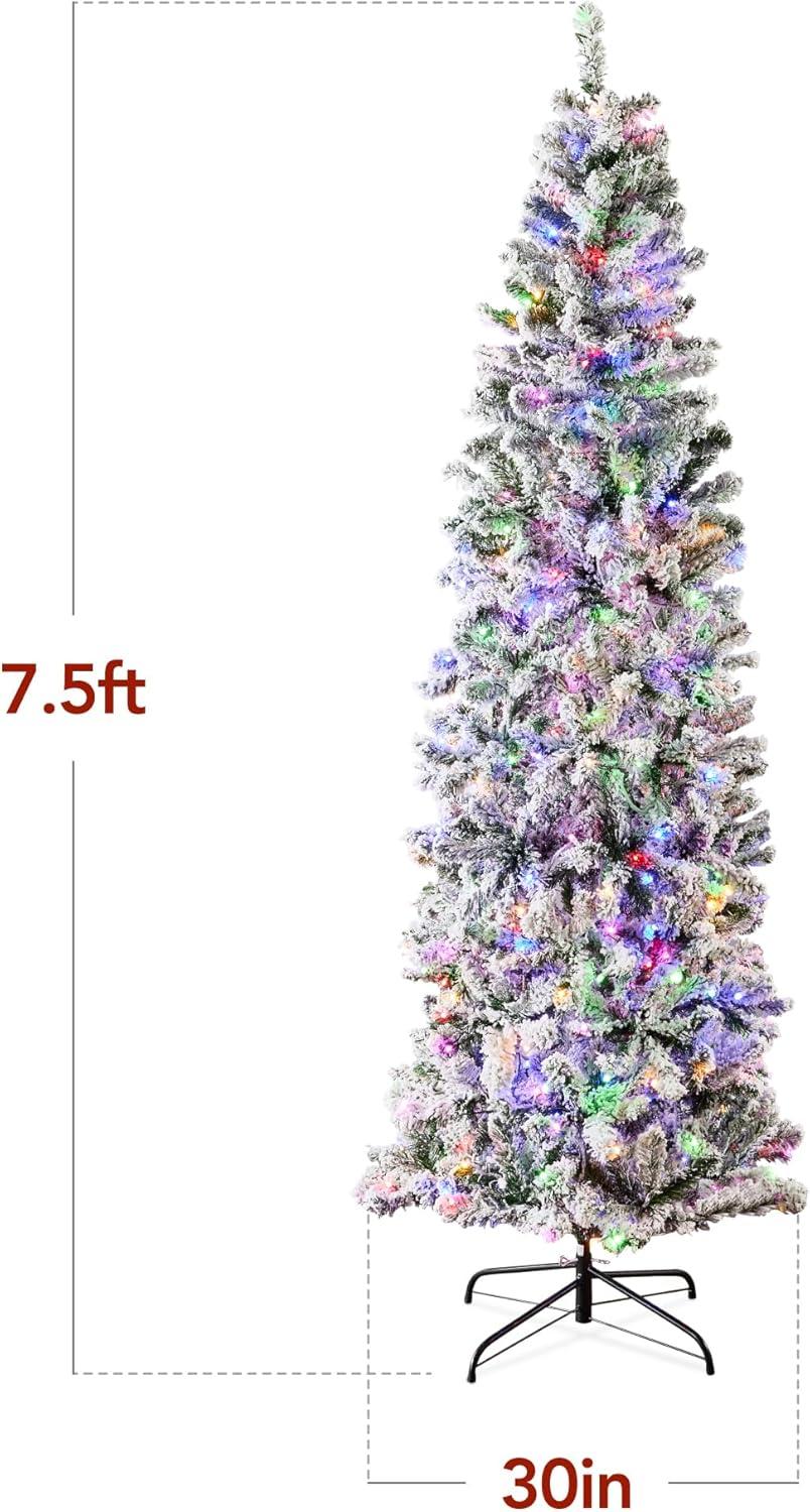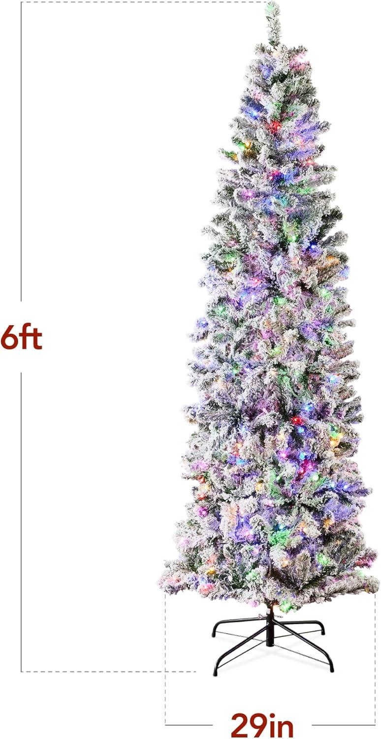 Best Choice Products Flocked Pencil Christmas Tree, Pre-Lit Slim Artificial Holiday Decoration, 6ft Lighted Skinny w/Base, Warm White Lights(Dual White/Multi Color Lights)
