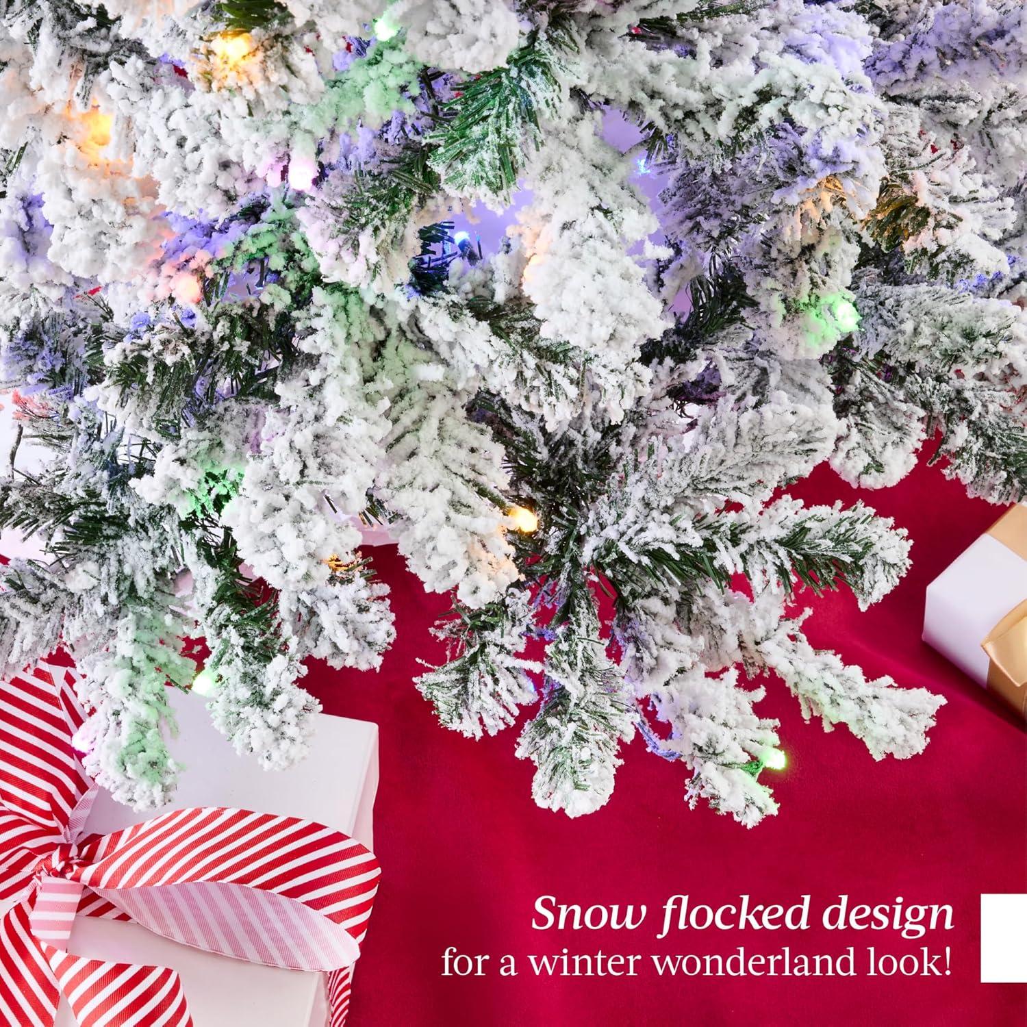 Best Choice Products Pre-Lit Artificial Christmas Tree 6ft Snow Flocked Pine Tree, 2-in-1 White and Multicolor LED Lights, Full Snowy Appearance(White)