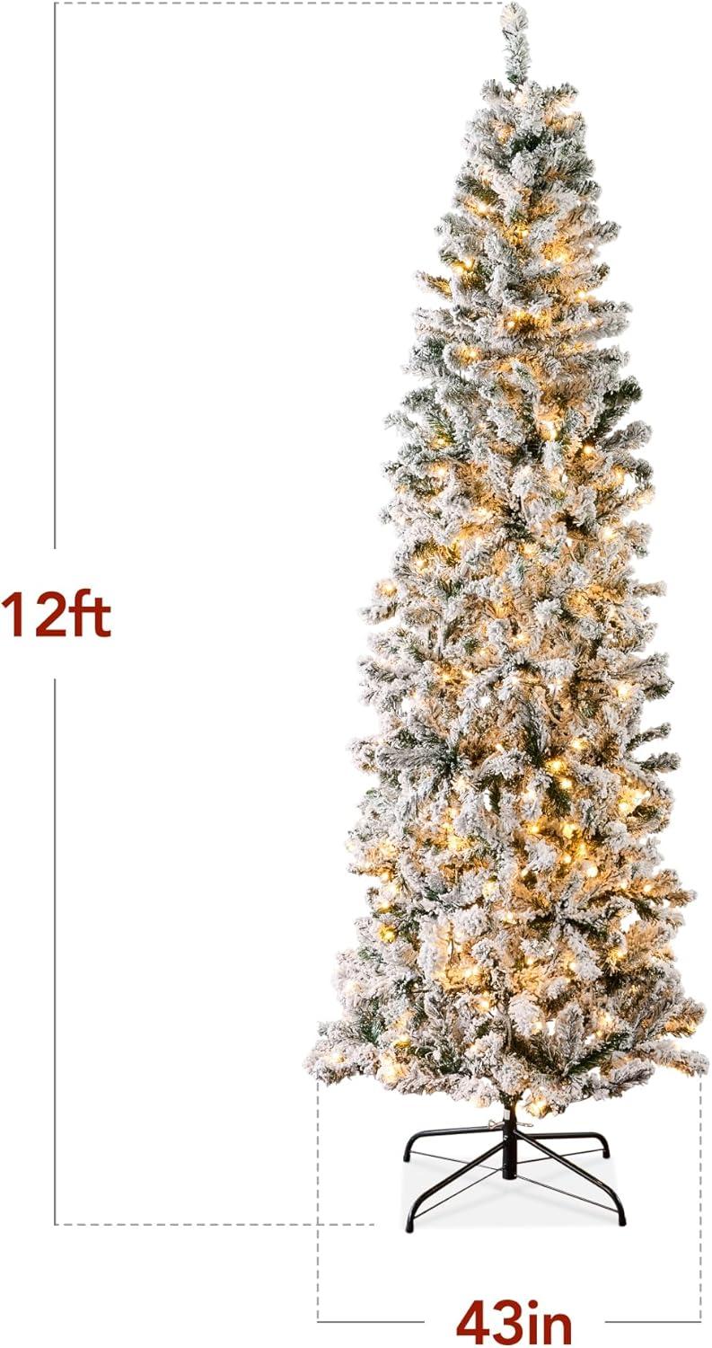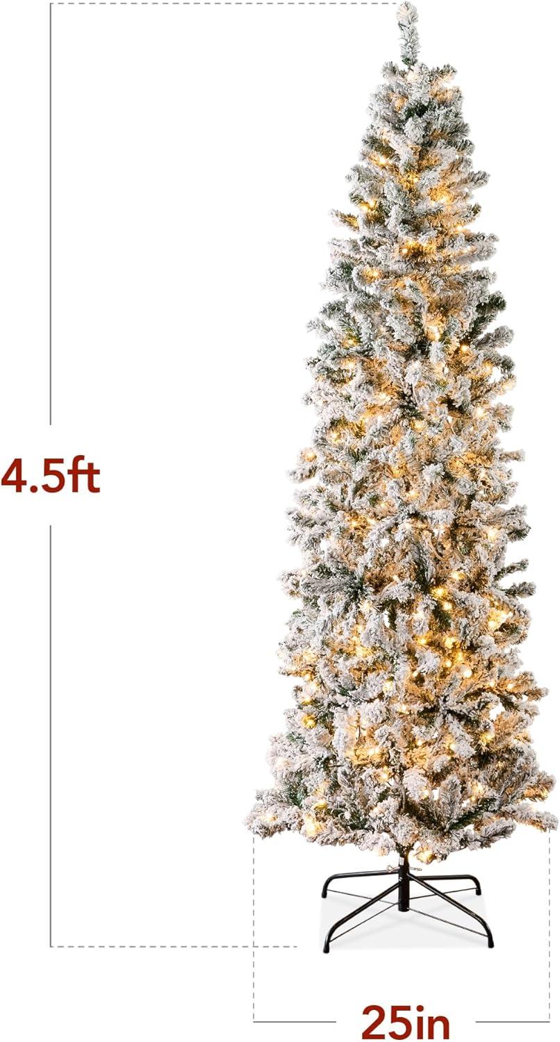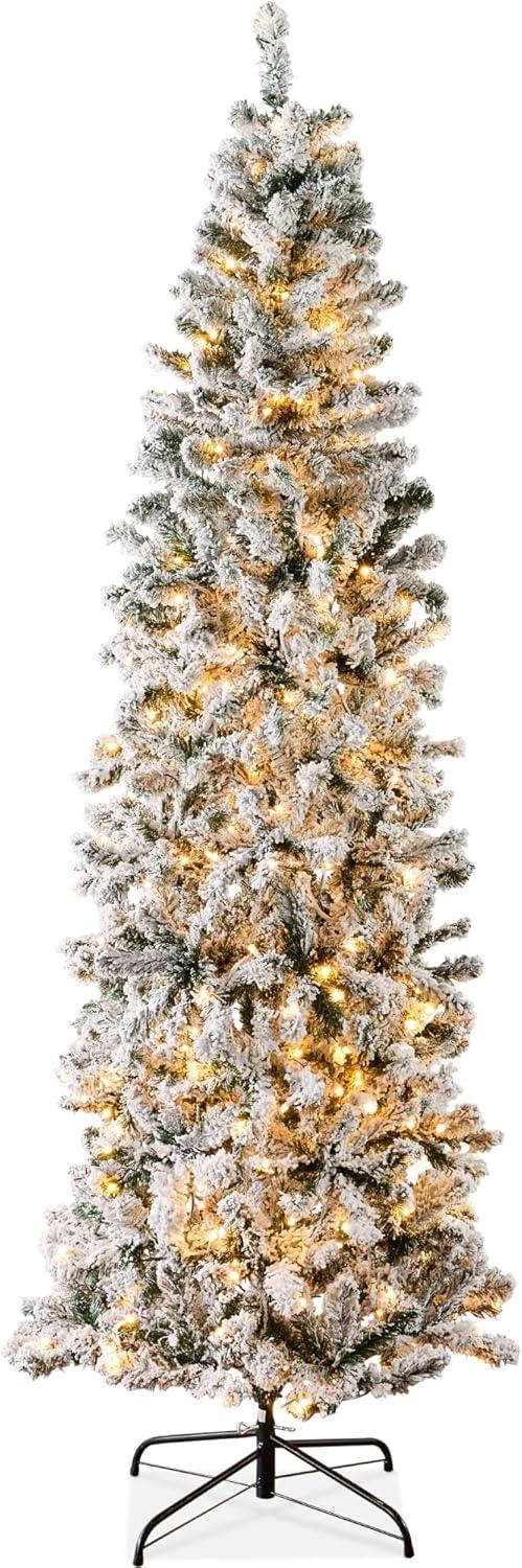 Best Choice Products Flocked Pencil Christmas Tree, Pre-Lit Slim Artificial Holiday Decoration, 6ft Lighted Skinny w/Base, Warm White Lights(White Lights)