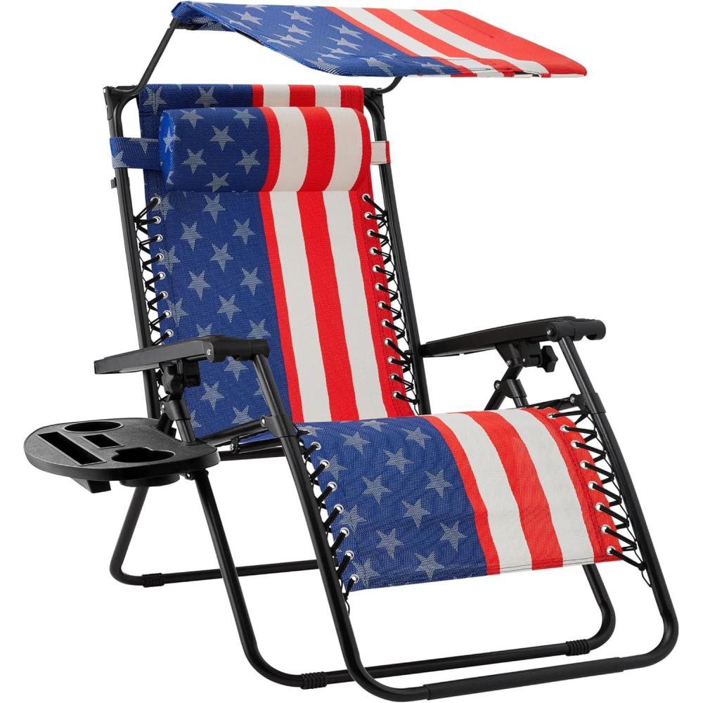 imageBest Choice Products Folding Zero Gravity Outdoor Recliner Patio Lounge Chair wAdjustable Canopy Shade Headrest Side Accessory Tray Textilene Mesh  Amethyst PurpleAmerican Flag